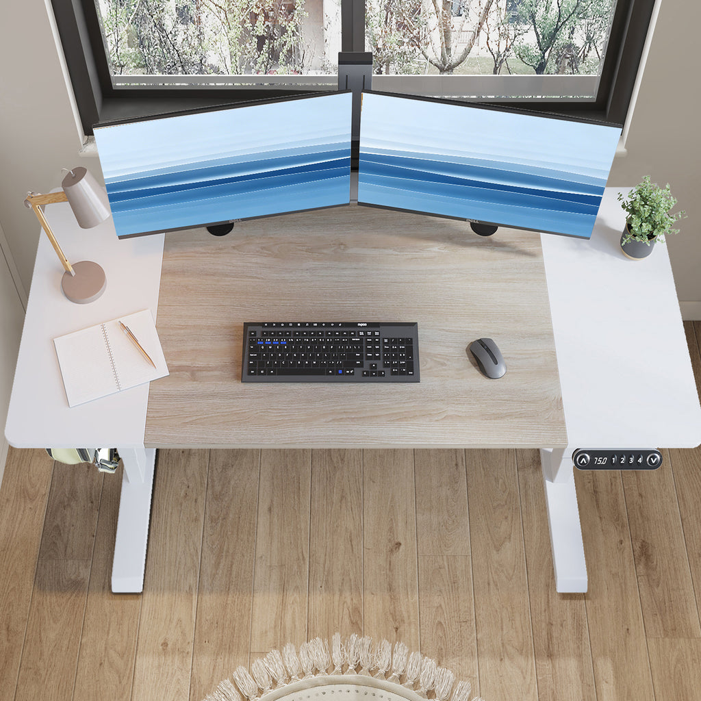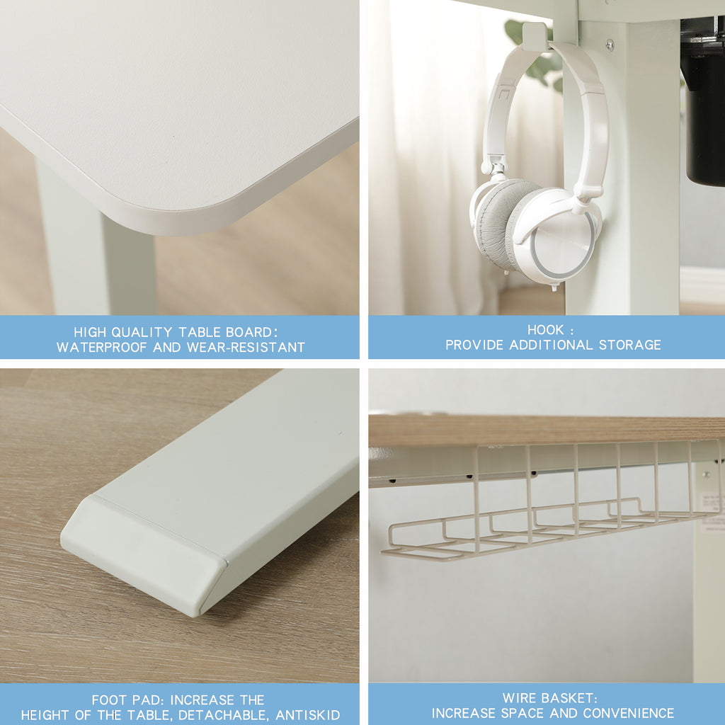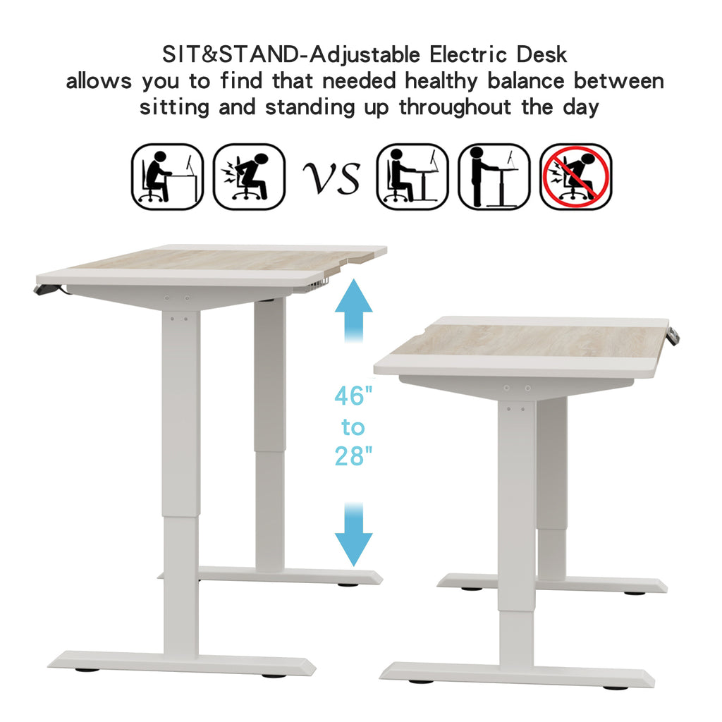 63'×30' Height Adjustable Electric Standing Desk Height Stand Up Computer Desk,Sit and Stand Home Office Desk with Splice Board (oak &white desktop+single motor white frame)