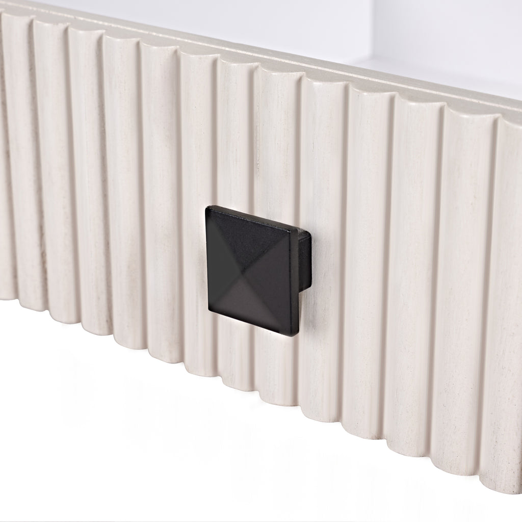 The black square handle make the desk minimalist yet elegent, and the round desk corner ensure the vanity is both kid-friendly and bump-proof.