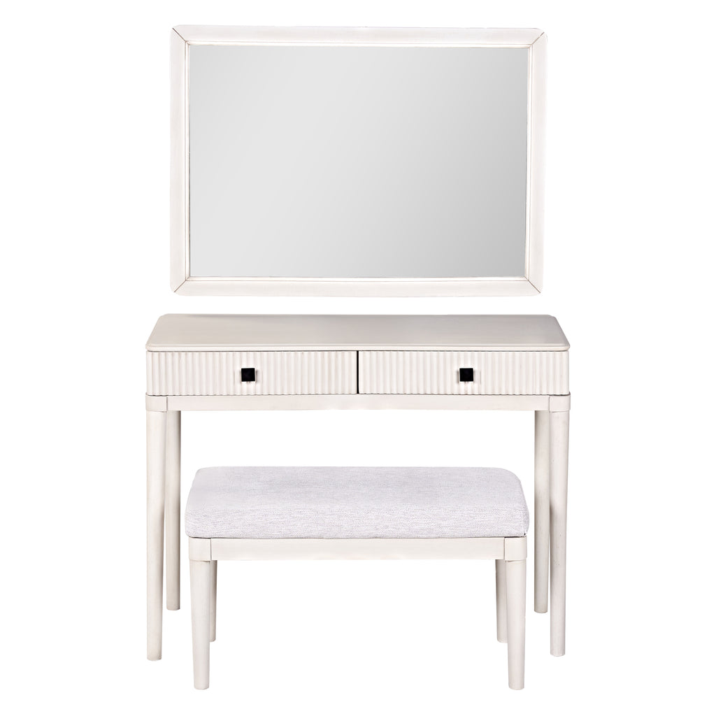 Included with the vanity desk is a ergonomic stool. Its solid wood legs, soft seat and inserted 2.8' foam pad ensure optimal comfort during daily makeup routine.