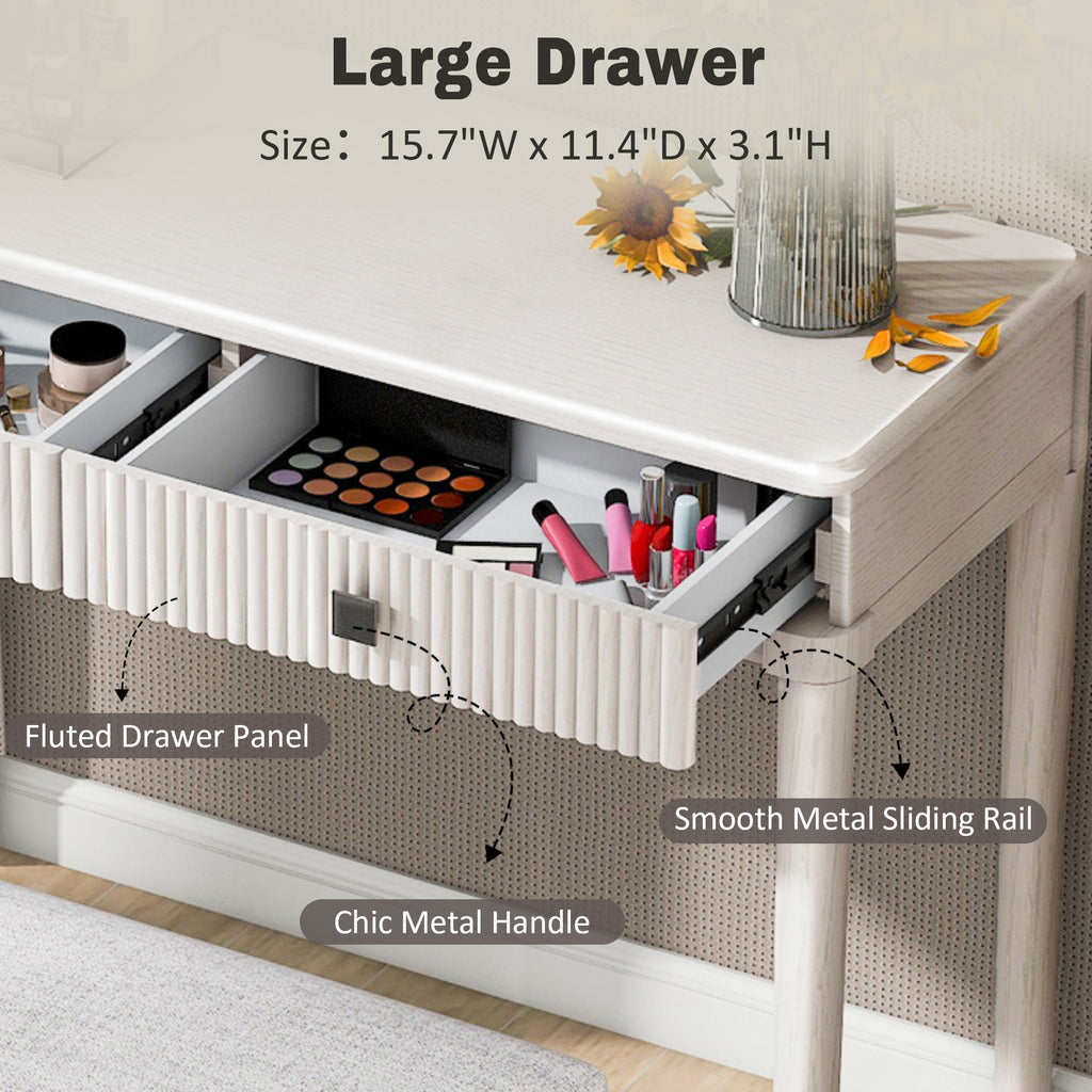 • Multi-Purpose Design for Versatile Use: This vanity desk features strip-fluted drawer panels and a round tabletop with smooth edges and corners. Its classic and timeless design makes it suitable for multiple purposes, including as a vanity table, computer desk, writing desk, study desk, console table, entryway table, or sofa accent table. It’s a perfect addition to any room, offering both style and functionality.