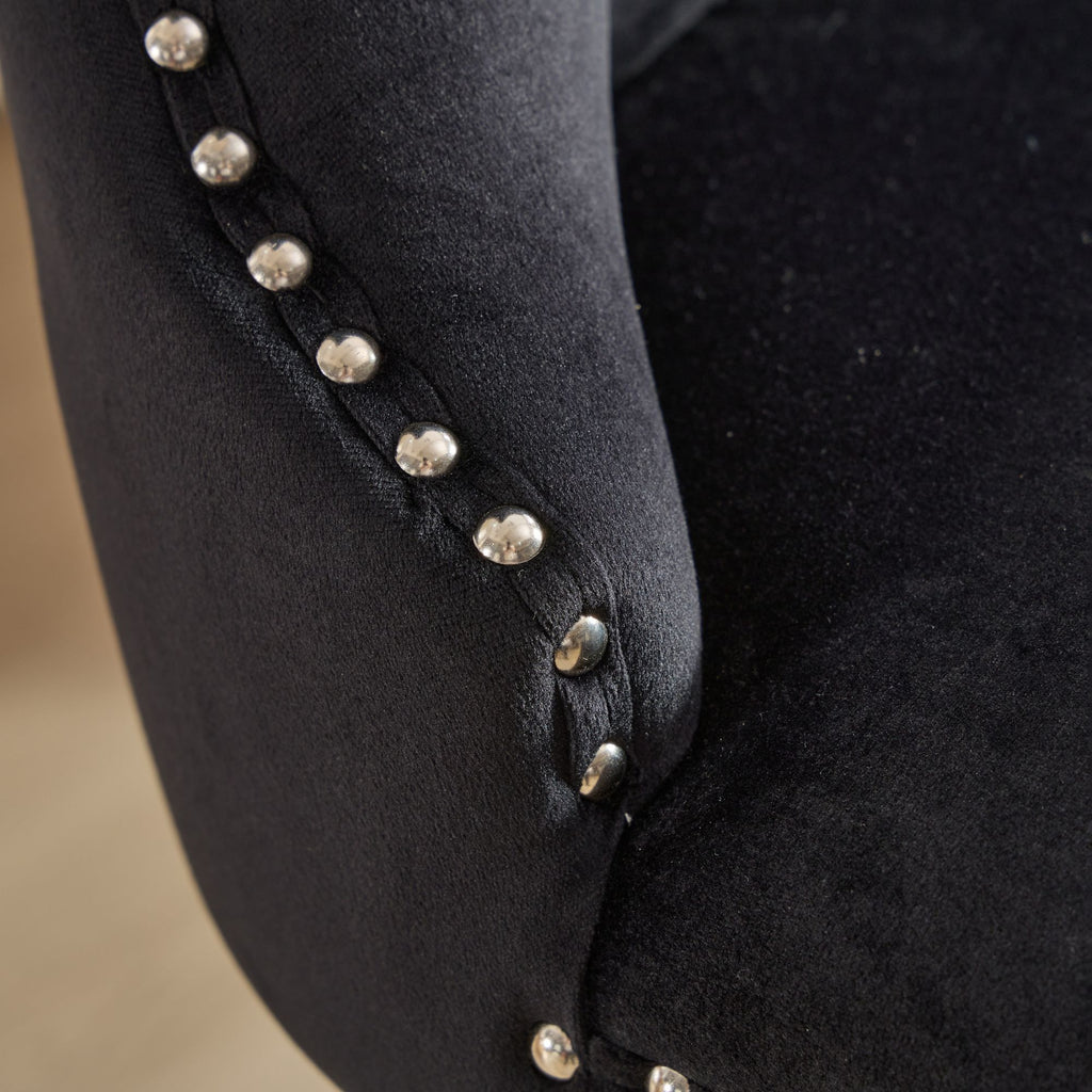 • This Velvet Chrome Bar stools featuring a very modern mid-century look,numbers of decorative rivets are inlaid around the cushion and backrest, which looks more noble and elegant. The high back with deep button tufted design gives the whole chair a delicate and luxurious feel.