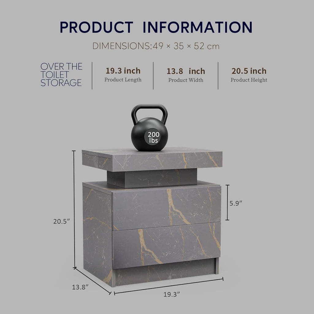 Nightstand LED Bedside Table Cabinet Lights Modern End Side with 2 Drawers for Bedroom (Grey Gold)