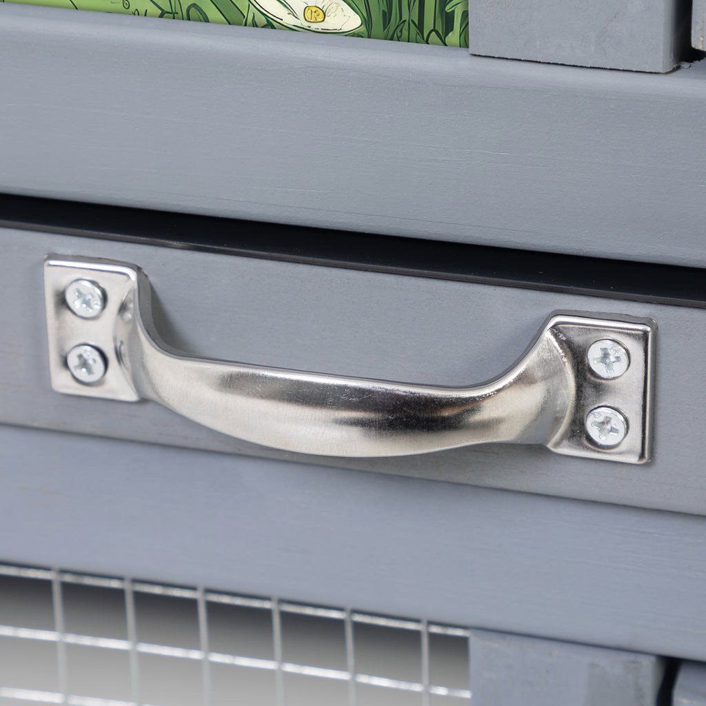 - 【Convenient Access & Hassle-Free Cleaning】Equipped with 4 lockable mesh doors, this secure hutch allows for easy interaction, feeding, and cleaning. The pull-out tray and openable roof of the upper loft make maintenance effortless, ensuring a clean and hygienic environment.