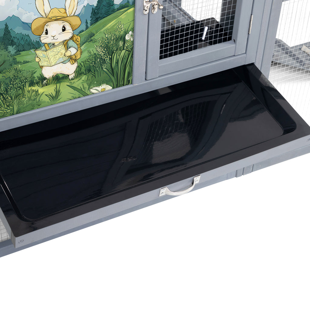 - 【Spacious & Cozy Pet Home】Designed with a retreat loft and dual spacious runs, this large Rabbit Hutch offers a secure living space for rabbits, guinea pigs, or other small pets. The colorful front panel adds charm and lets you write your pet’s name for a personal touch.