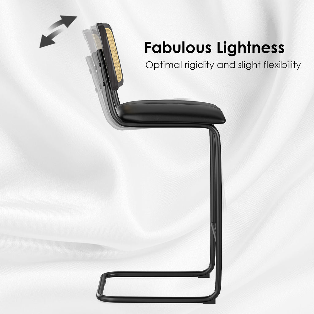 Counter Height Bar Stools Set of 2, Upholstered PU Leather Barstools with Rattan Back, 30 inch Stools Armless Bar Chairs for Kitchen Island, Black