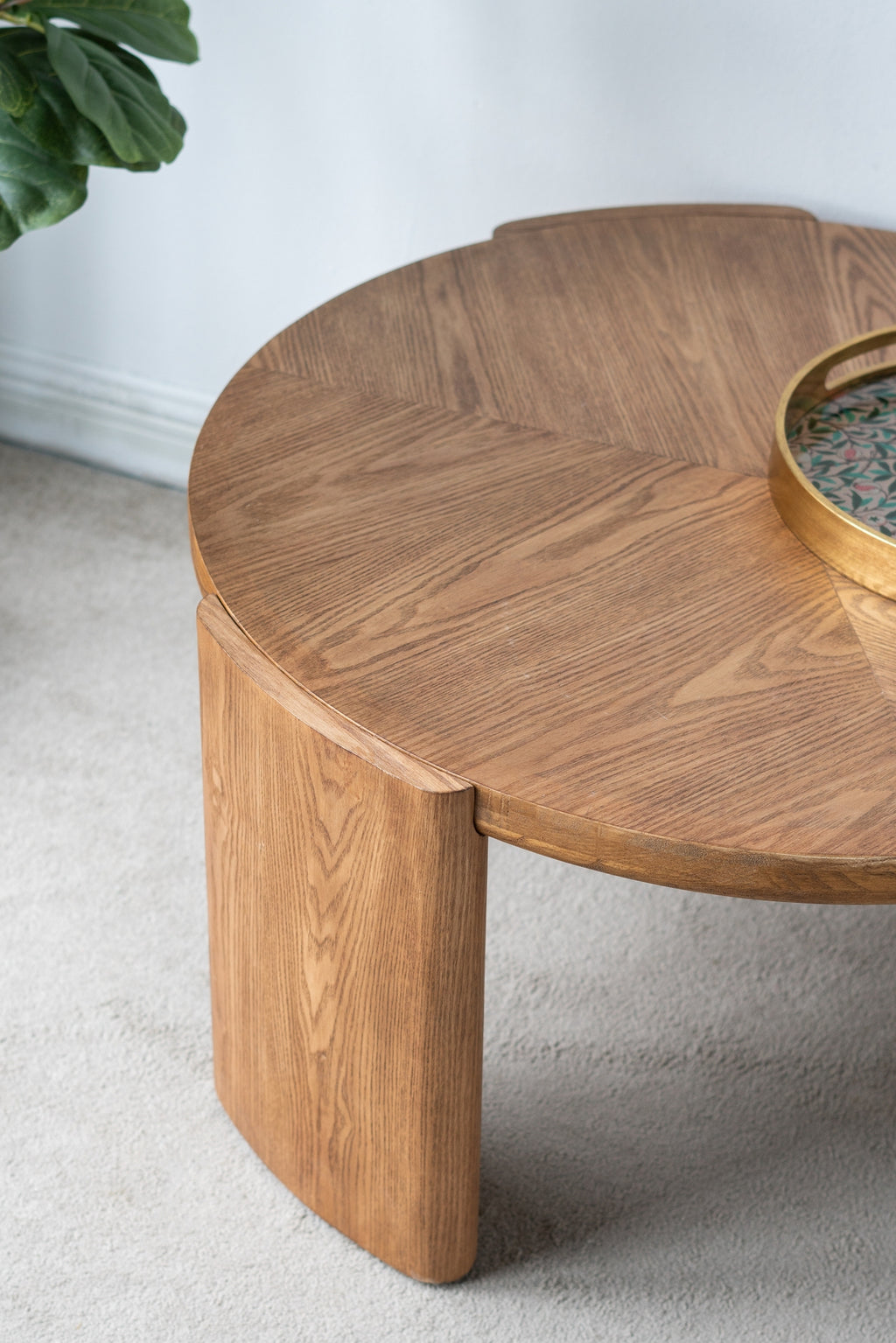 D32x16.5' CRound Coffee Table with Curved Legs and Brown Ash Veneer Finish
