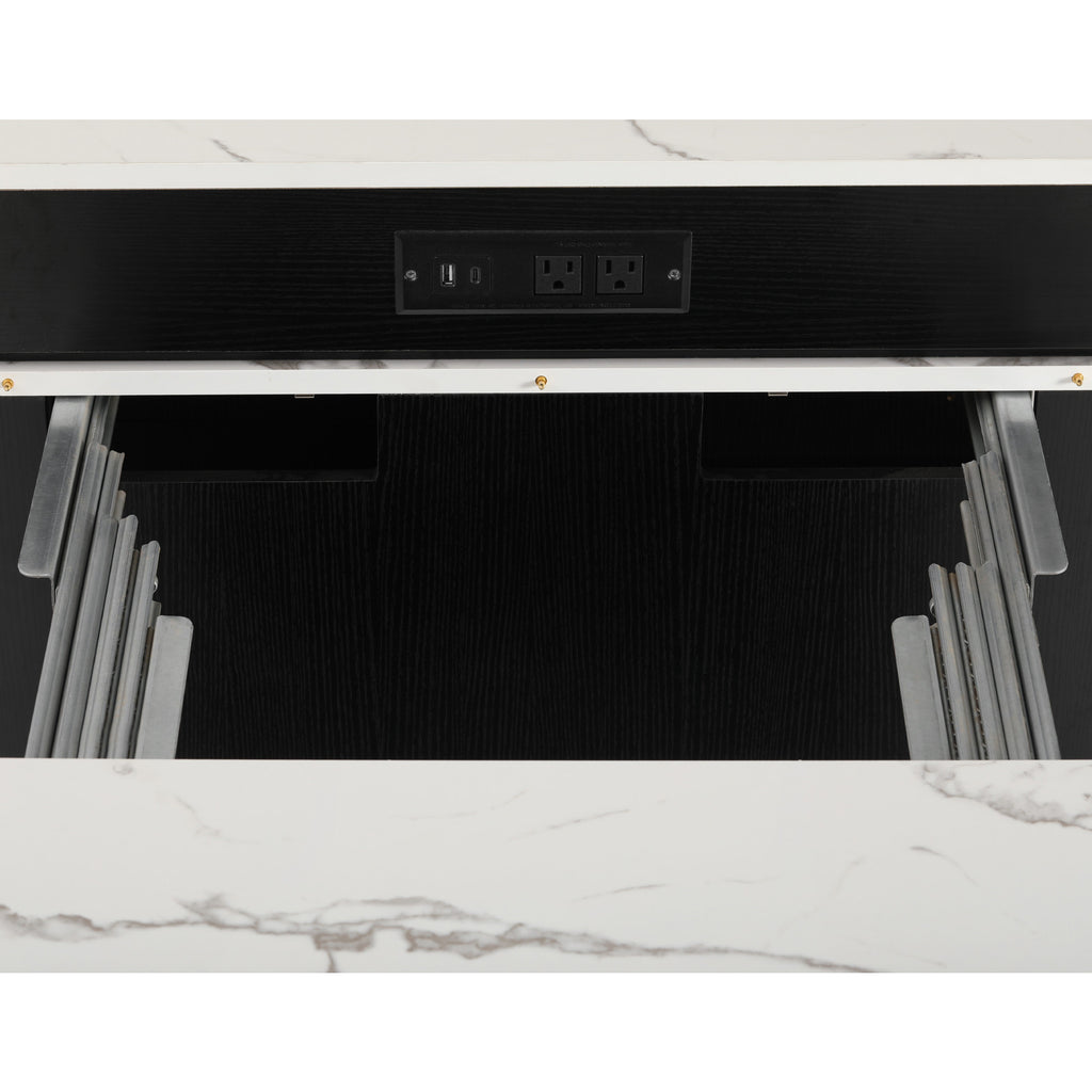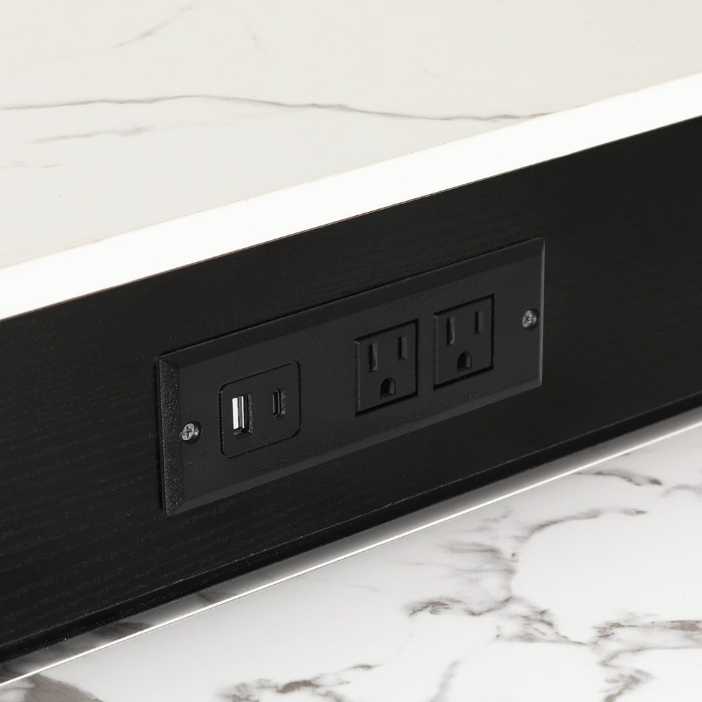 This elegantly designed kitchen island includes a sophisticated built-in power outlet, featuring 2 AC outlets, 1 USB port and 1 Type-C port to effortlessly meet all of your kitchen appliance power requirements.