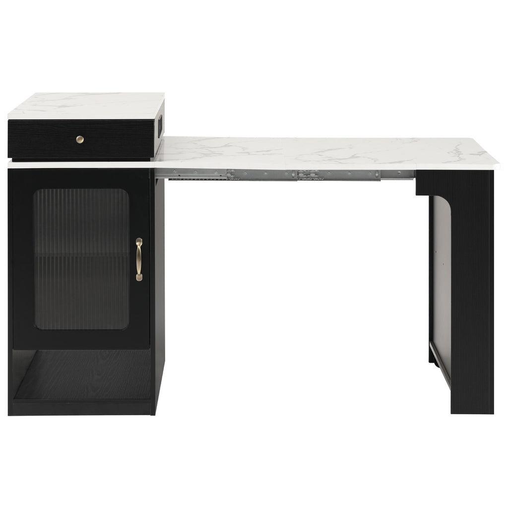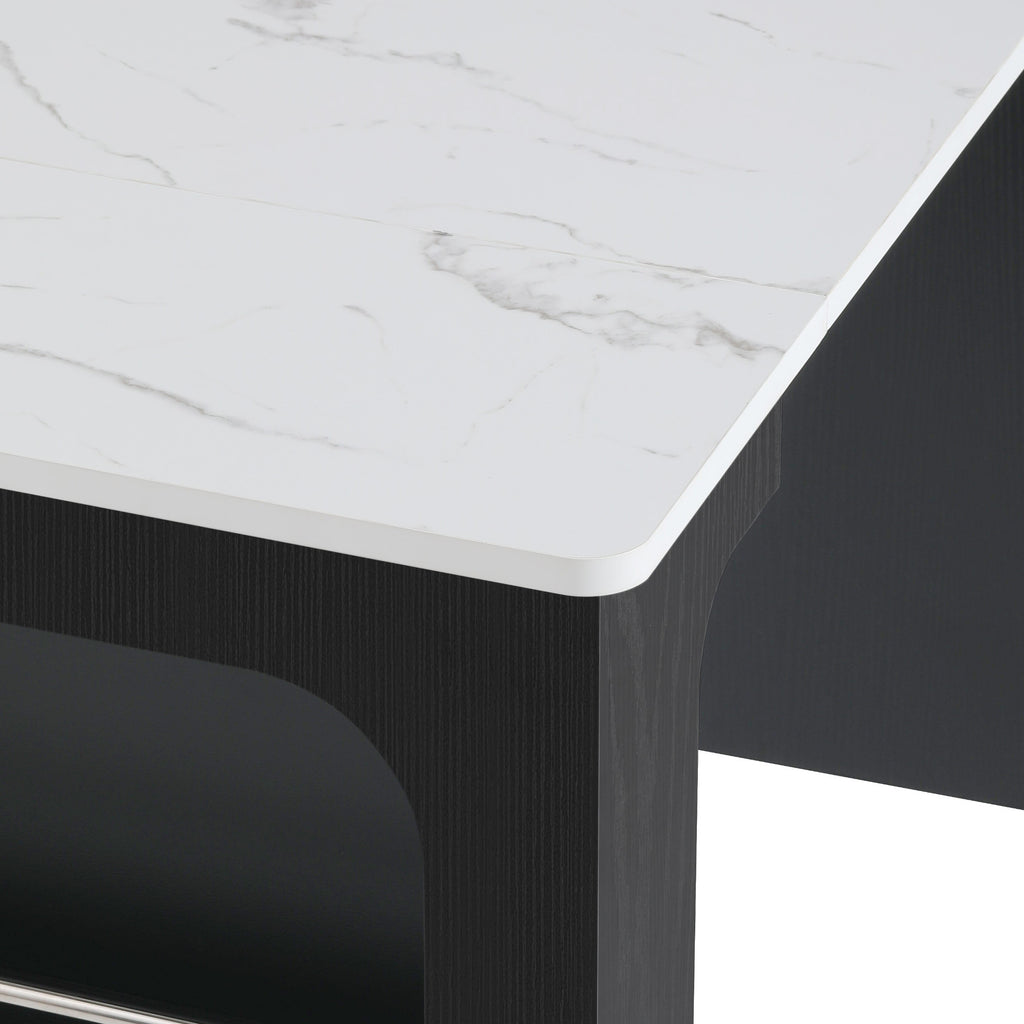 | Highlights | [10.2'-26'-41.8' Extendable Dining Table Design] [59.5'x31.5' Large island] [Ample Storage Space][Space-Saving Design] [Glass Cabinet Door][Double-sided Cabinet Storage] [Side 2 Open Shelves with Guardrails][Adjustable Shelves] [Two Removable Tabletop Panels][Tabletop Panels Storage Rack] [Power Outlet with 1USB + 1 Type C] [2 * 360°Smooth Rotation Wheels][Double-sided Drawers] [Wood Grain Table/Faux Marble Table][Smooth Metal Hinges] [High Quality Particle Board and MDF Material] |