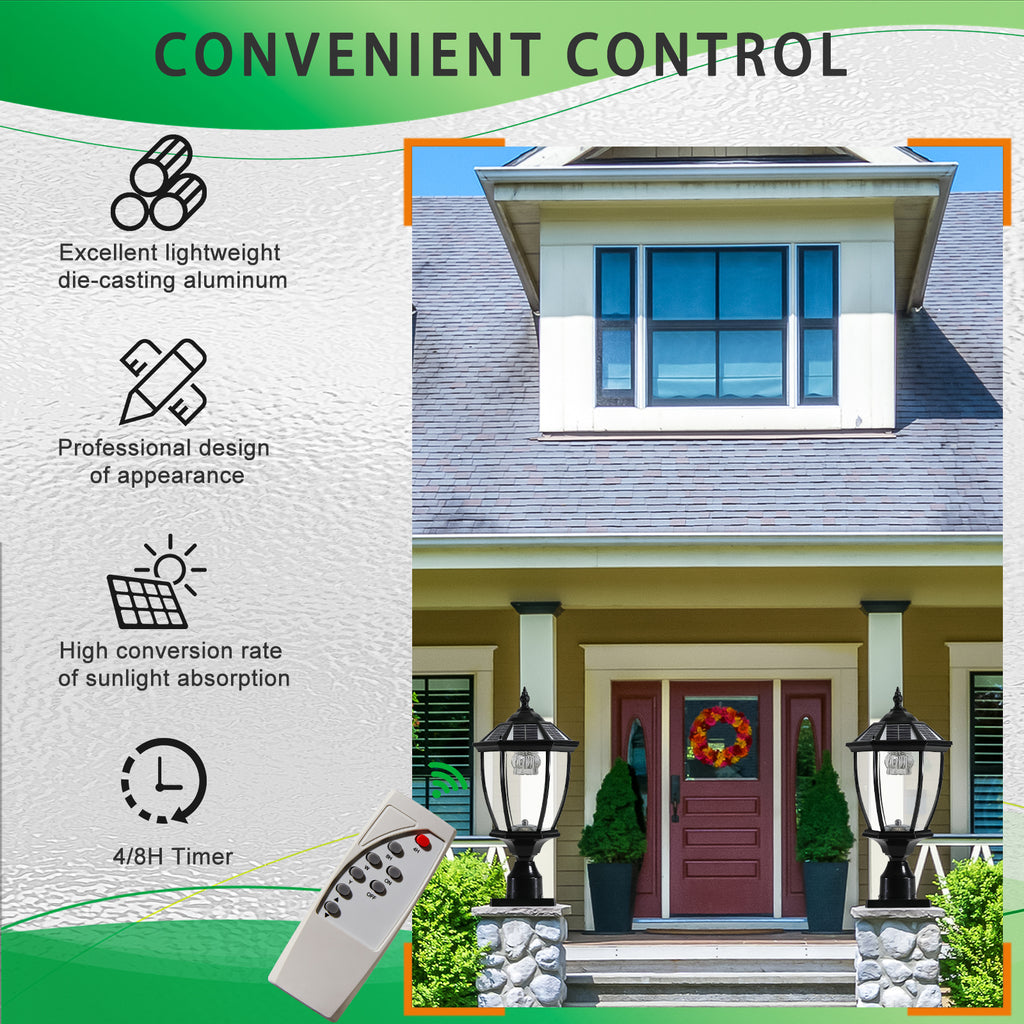 20'(H) Black Solar Powered LED Outdoor Lantern, Vintage Garden Light with Elegant Glass Design