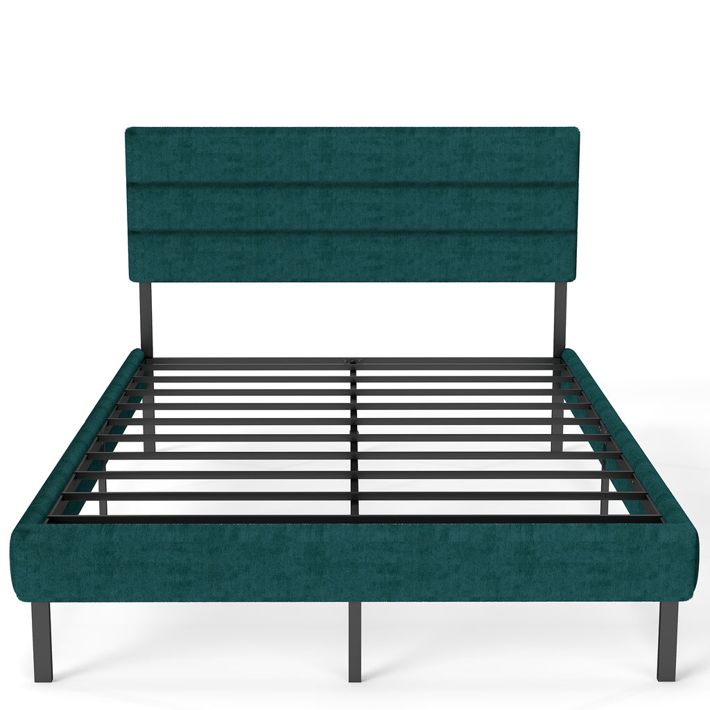 Queen Size Upholstered Platform Bed Frame - With Headboard, No Box Spring Needed, 14'' Underbed Storage