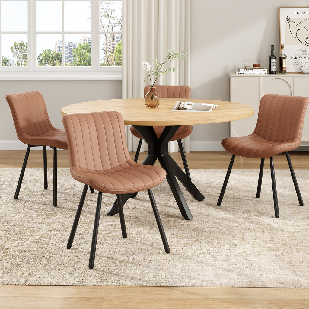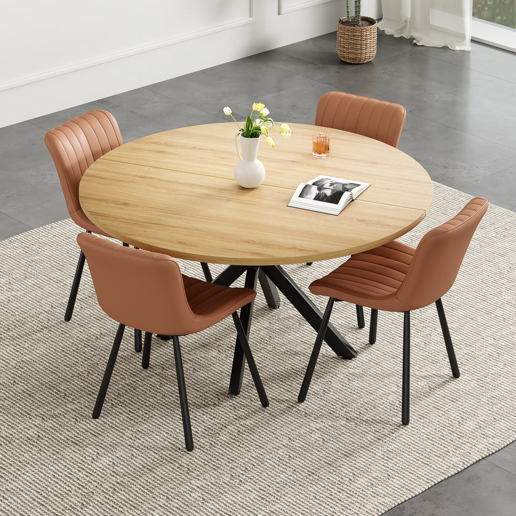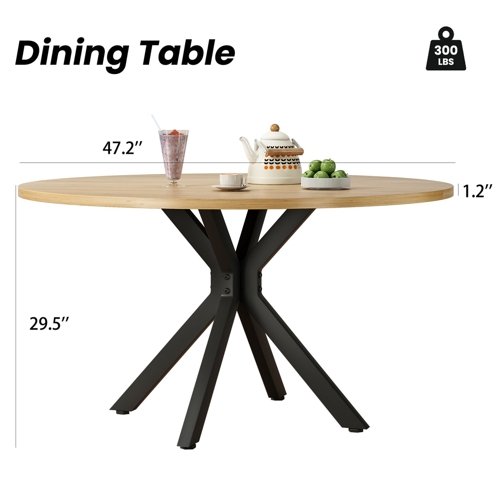 47 Inch Round Dining Table for 4-6 People, Mid Century Modern Kitchen Table with Sturdy Base, Wood Dining Table for Kitchen Dining Room (Natural)