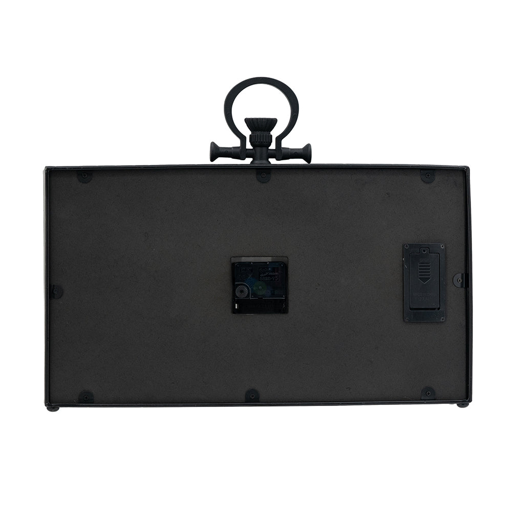 This table clock draws inspiration from old-town London decor, boasting a black rectangular silhouette, white Roman numerals, and a cluster of golden gears that operate silently within a glass casing. Place it on your desk, shelf, tabletop, or mantel to add a burst of steampunk style while ensuring you can easily keep an eye on the time. Measurements: 17.5W x 13H x 3D.