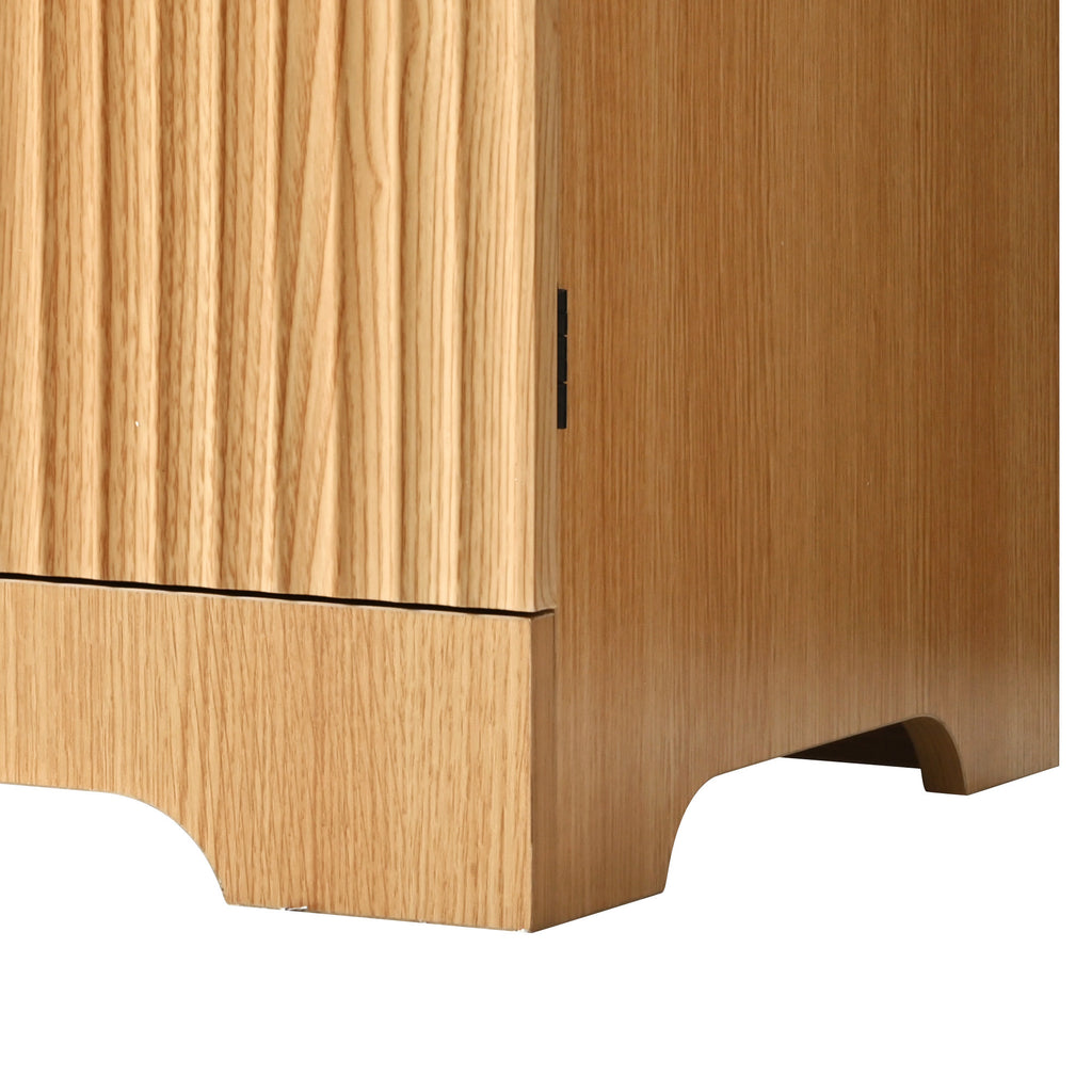 Elevate your space with this modern pantry, featuring a chic arched top and handcrafted fluted doors. The gently curved, wave-inspired fluted panels add depth and texture, while the smooth wood finish blends clean lines with organic warmth.