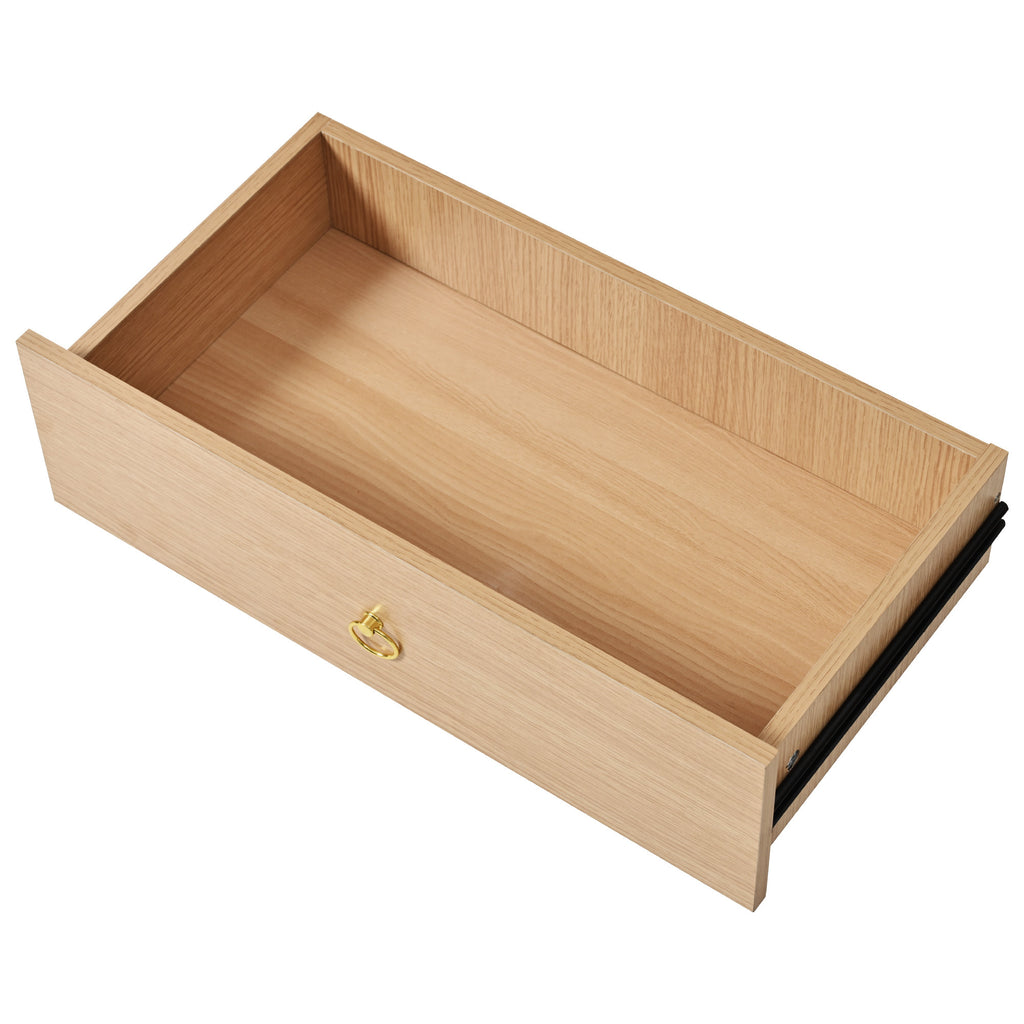 This pantry features a spacious hidden storage drawer, perfect for keeping items out of sight while maintaining easy access