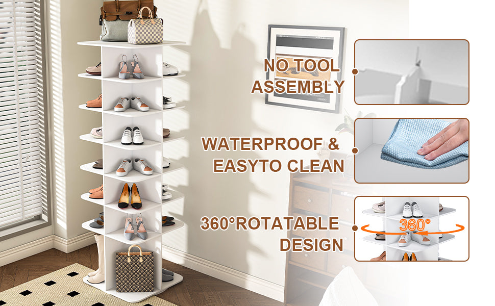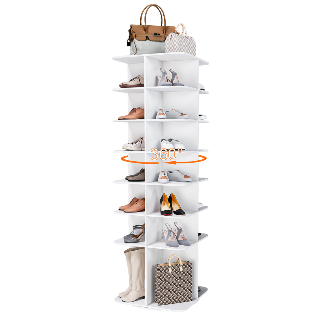 • ORGANIZED AND BEAUTIFUL - Make your shoes neat and organized with this rotating shoe rack tower lazy susan; The space saving design can hold up many shoes or bags in a compact space; SIZE: 23.7'W x 23.7'D x 72.5'H