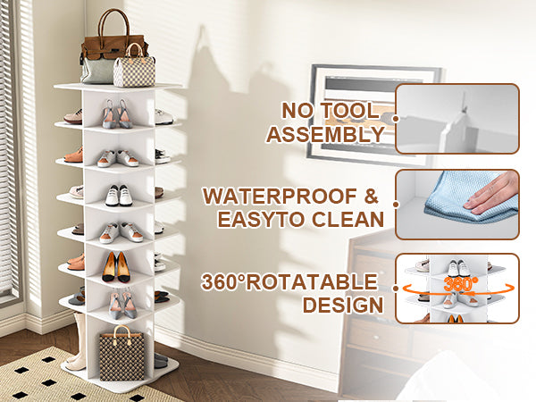 • EASY TO ASSEMBLE - It is super easy to put the spinning shoe rack tower together; You can assemble easily with the included instructions; And it won't take up too much of your time