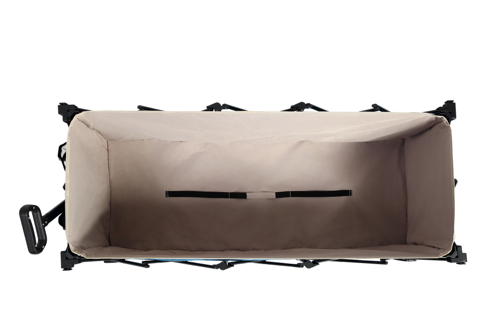 With a much Deeper and enlarged storage space of 53.54' L x 21.26' W x 23.62' H. The roomy internal volume and surprise loading capacity more than 3times than other wagons overall. Two mesh cup holders beverages safe and sound.