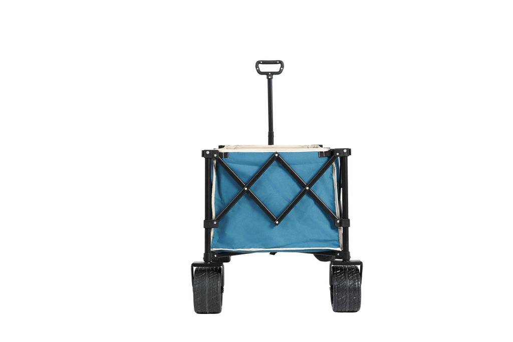 The frame of the folding cart is made of high quality steel for reliability and durability. Capable of carrying camping gear, garden gardening items, sundries and other items. And it can free up space on both sides for pulling longer and wider loads.
