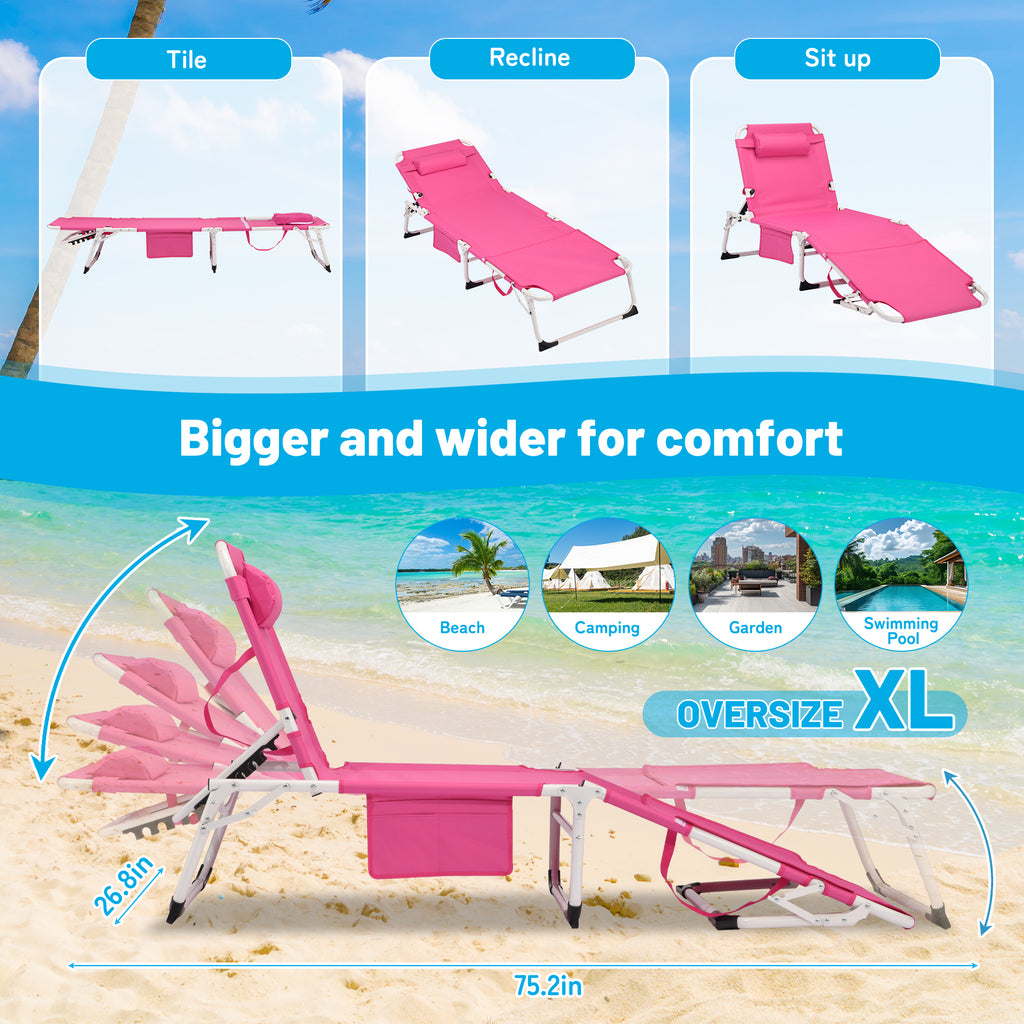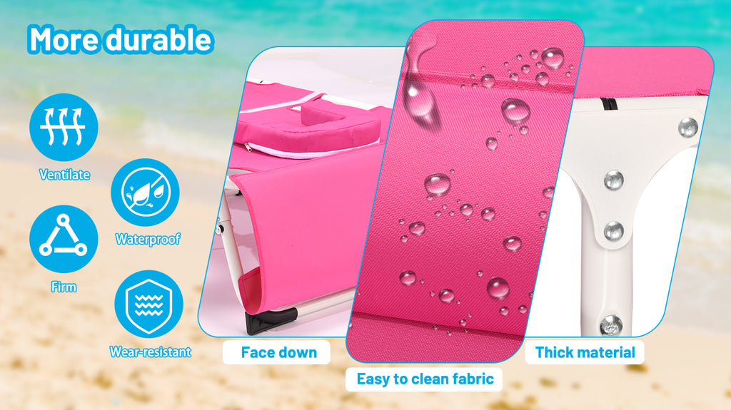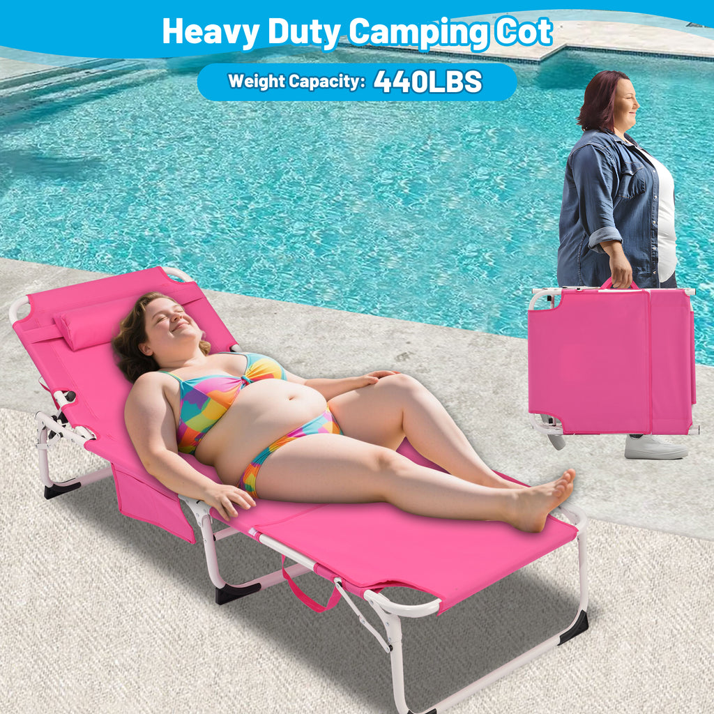 3-in-1 Heavy Duty Tanning Chair with Face Hole Adjustable 5-Position Folding Chaise Lounge Chairs for Outside Portable Lay Flat Beach Lounge Chair for Outdoor Sunbathing Patio Pool Lawn Camping Deck P