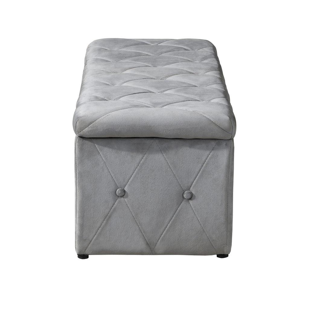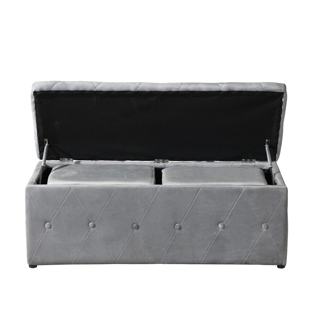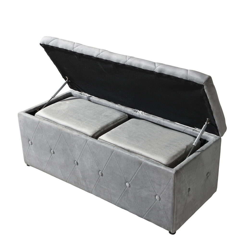 1 Piece Rectangular Storage Ottoman Short velvet with 2 Set Ottomans (Light Gray)