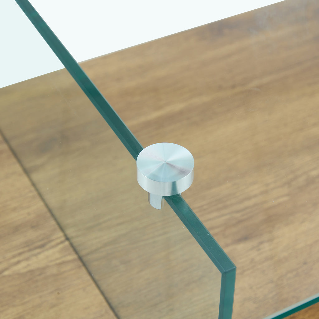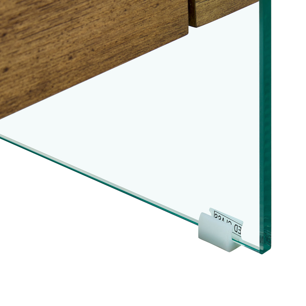• Transparent Tempered Glass Legs: Equipped with transparent tempered glass legs on both sides, providing a stable and clear support structure.Stable Support: The tempered glass legs design ensures the stability and safety of the coffee table during use.Sturdy Construction: The clear tempered glass legs are securely connected to the tabletop, with non-slip pads at the bottom to ensure stability.