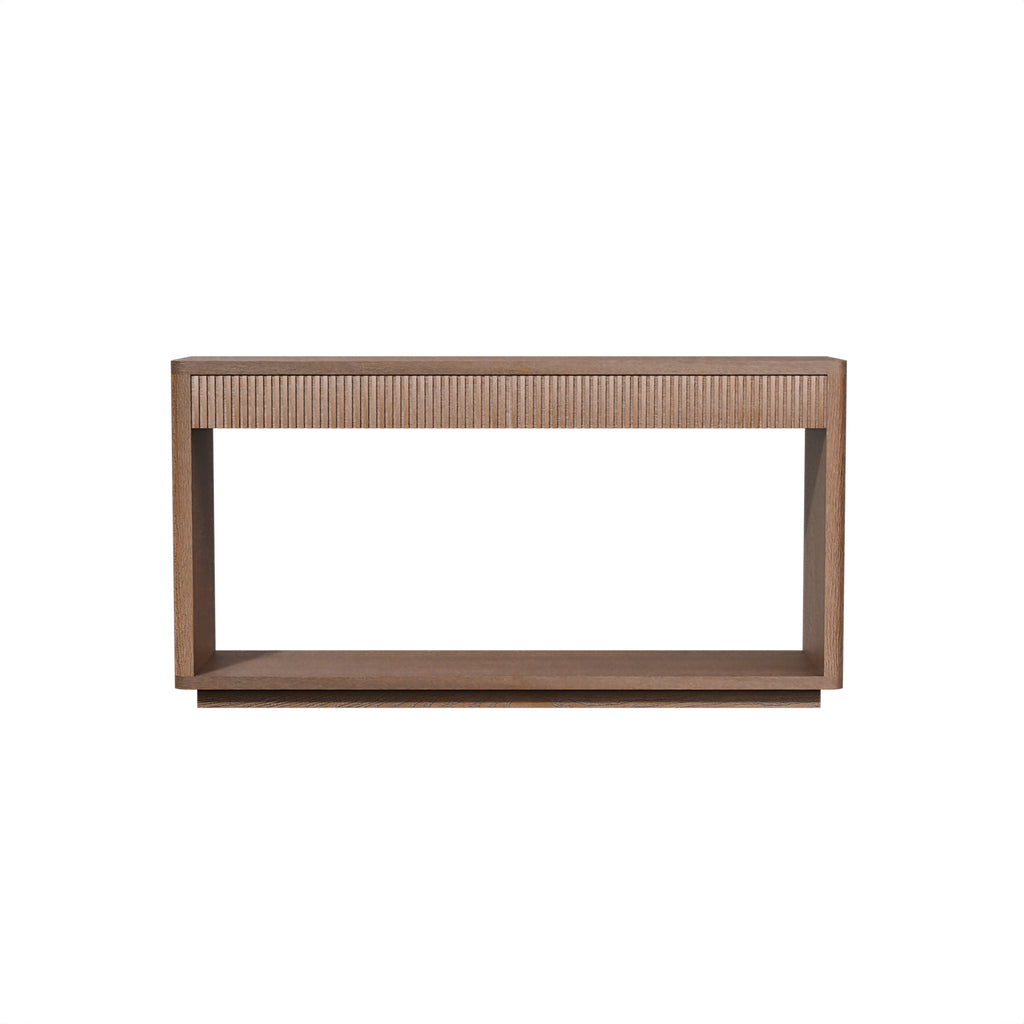 60' Modern 2-Drawer Fluted Console Table Natural Wood Veneer Sofa Table Behind Couch Table for Living Room, Hallway, Entryway, Home Office, Walnut