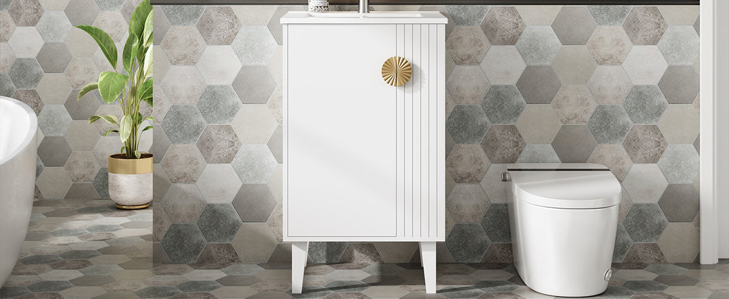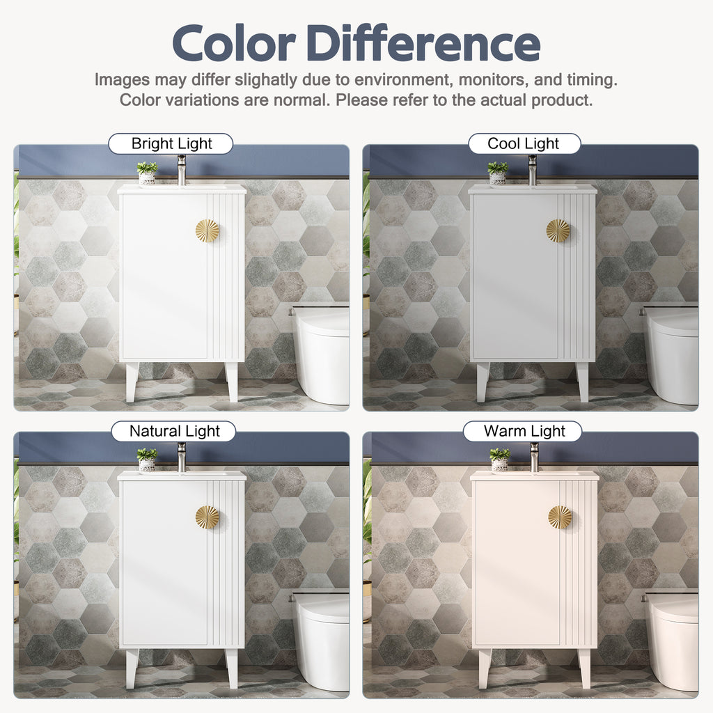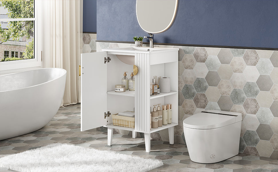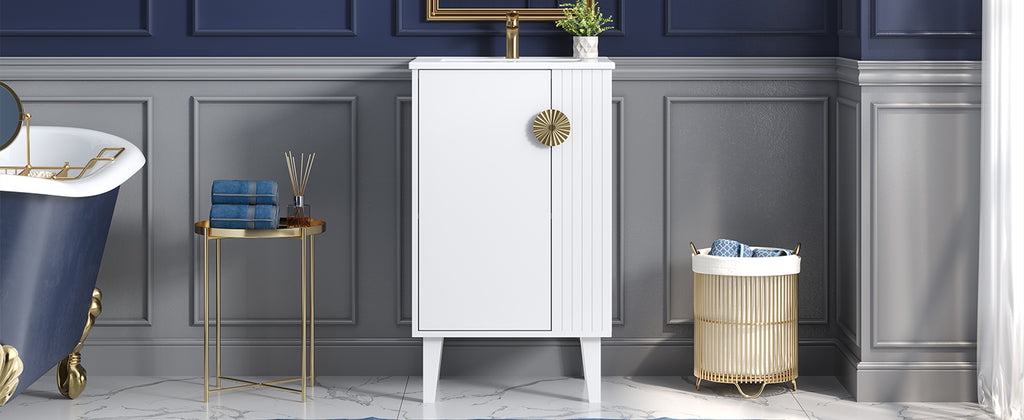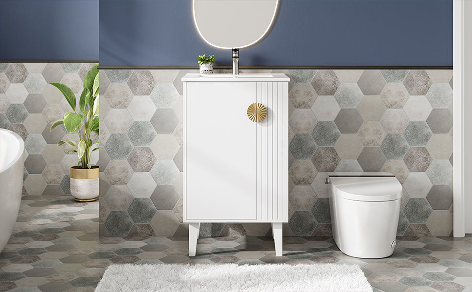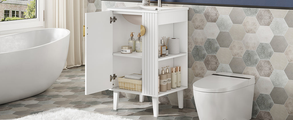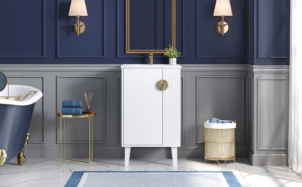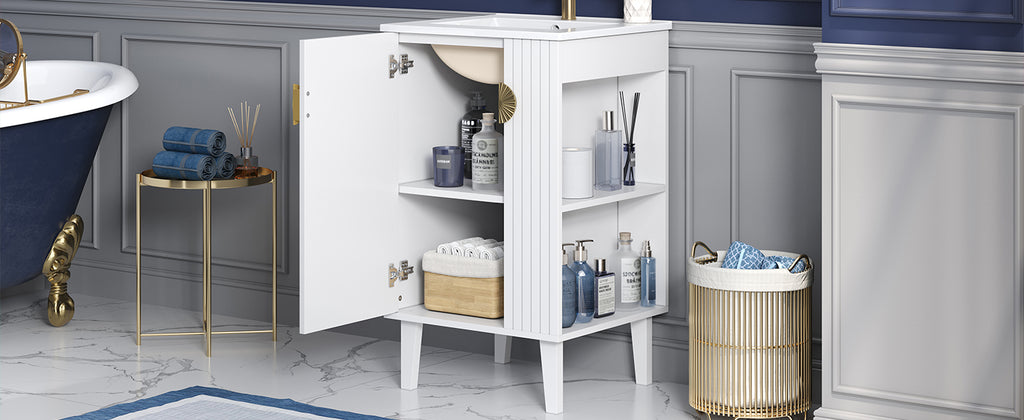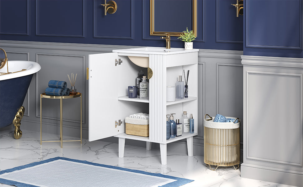 20-inch Bathroom Vanity with Ceramic Sink, Freestanding Single Vanity Set with Soft Closing Door, Chic Half-Moon Pulls, French Style, White