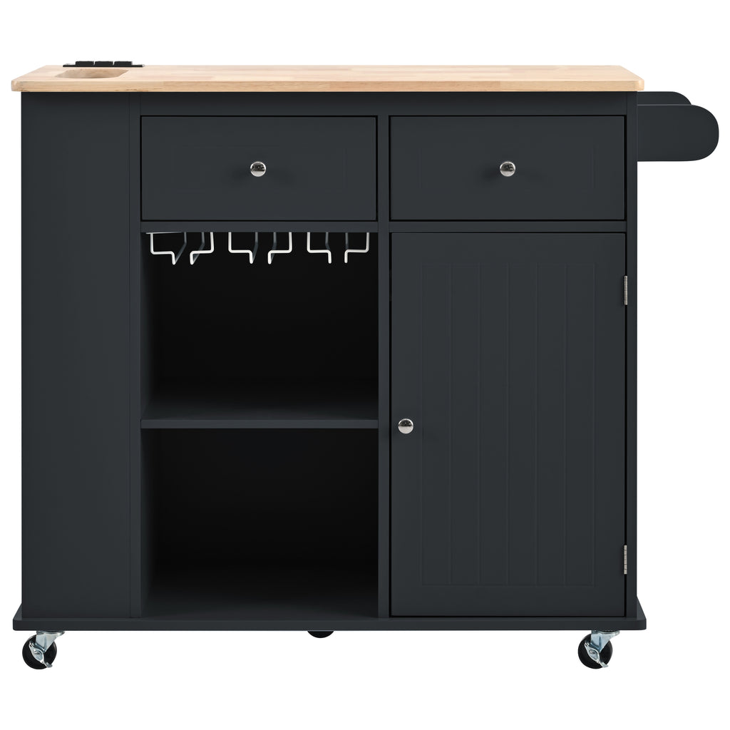 Kitchen Island with Power Outlet,Kitchen Storage Island with Drop Leaf and Rubber Wood,Open Storage and Wine Rack,5 Wheels,with Adjustable Storage for Home, Kitchen, and Dining Room, Black