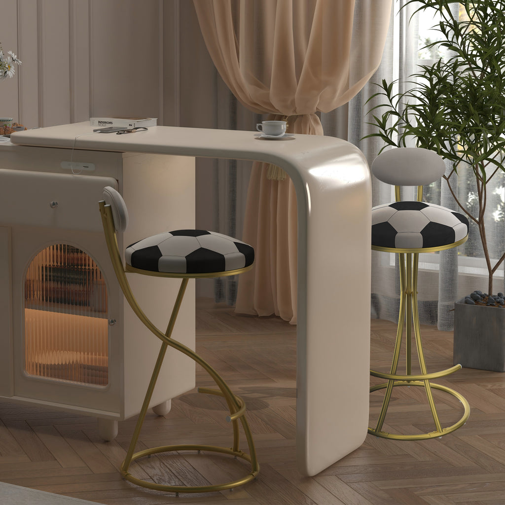 Indulge in the ultimate comfort with our luxurious velvet barstools, featuring a plush football print cushion and a built-in footrest for ultimate relaxation. The velvet seat offers a supportive backrest filled with soft foam cushioning for long-lasting comfort. The premium anti-scratch upholstery ensures easy cleaning, making spills a thing of the past.