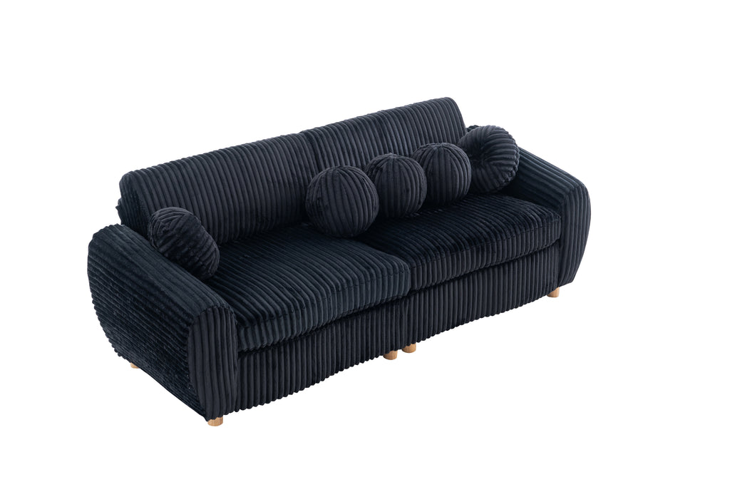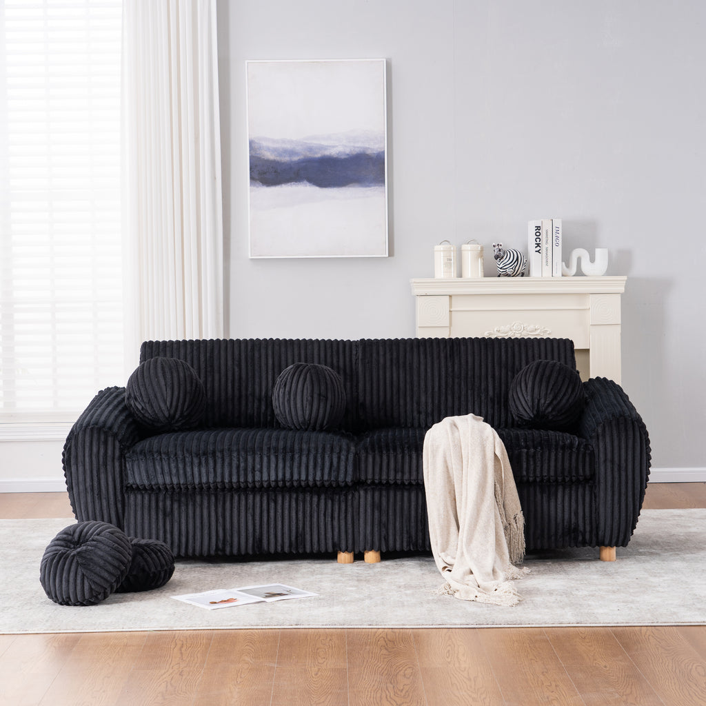 Modern Sofa for Living Room, 84' Black Corduroy Sofa Couch, Sectional Love Seat Couch, Upholstered Sofa for Apatment Bedroom Home Office