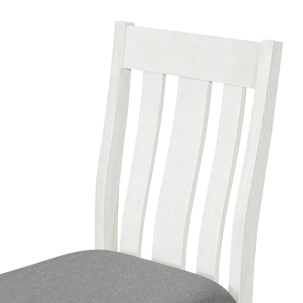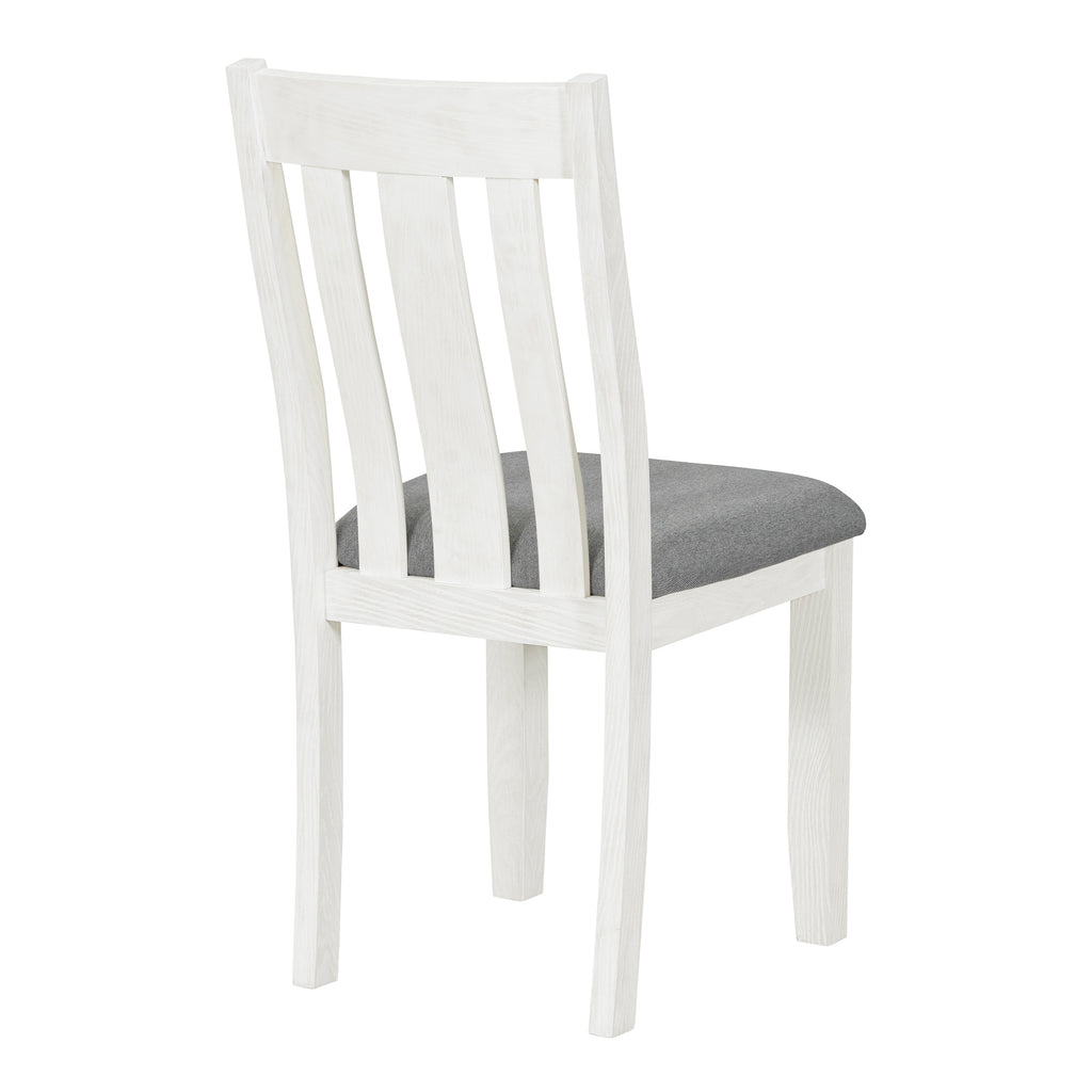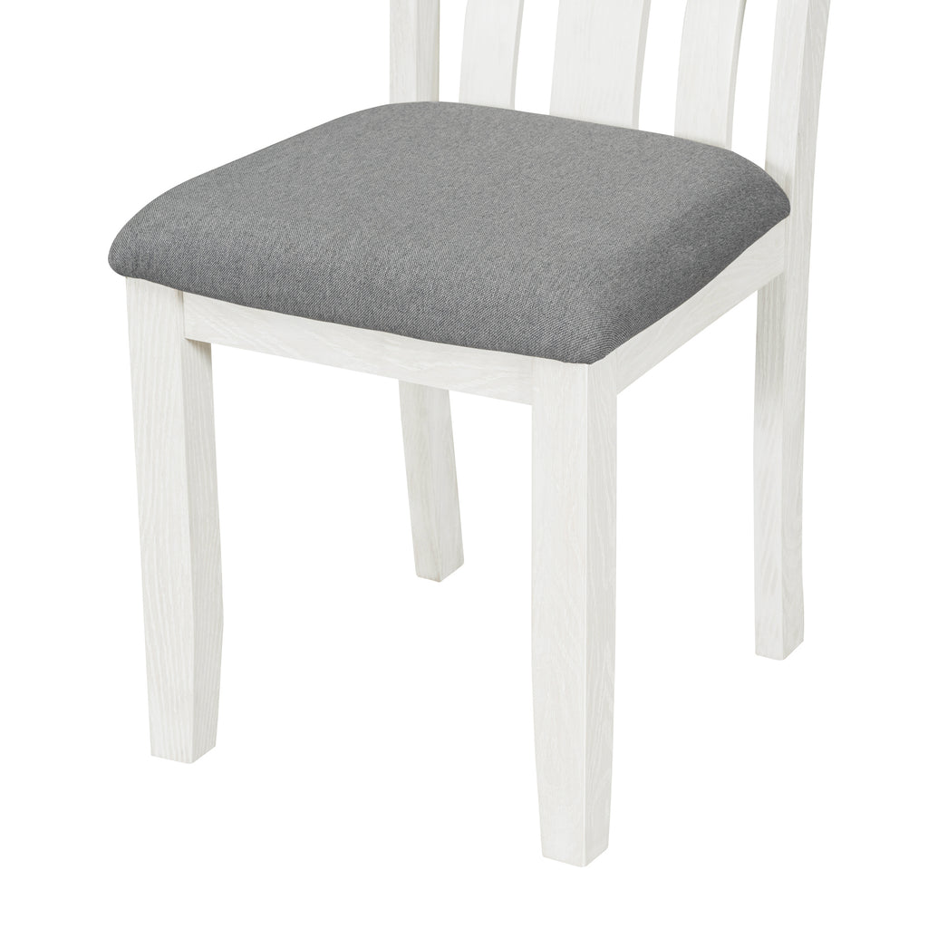 - The back of the chair is ergonomically designed, with just the right curve to support your back.With comfort in mind, the chairs are equipped with linen upholstered to provide you with a comfortable use while dining and working. The surface of the table is made of antique brown OAK veneered, which is very beautiful.The white legs of the table and chair are matched with pressing OAK effect, which makes it look more textured.
