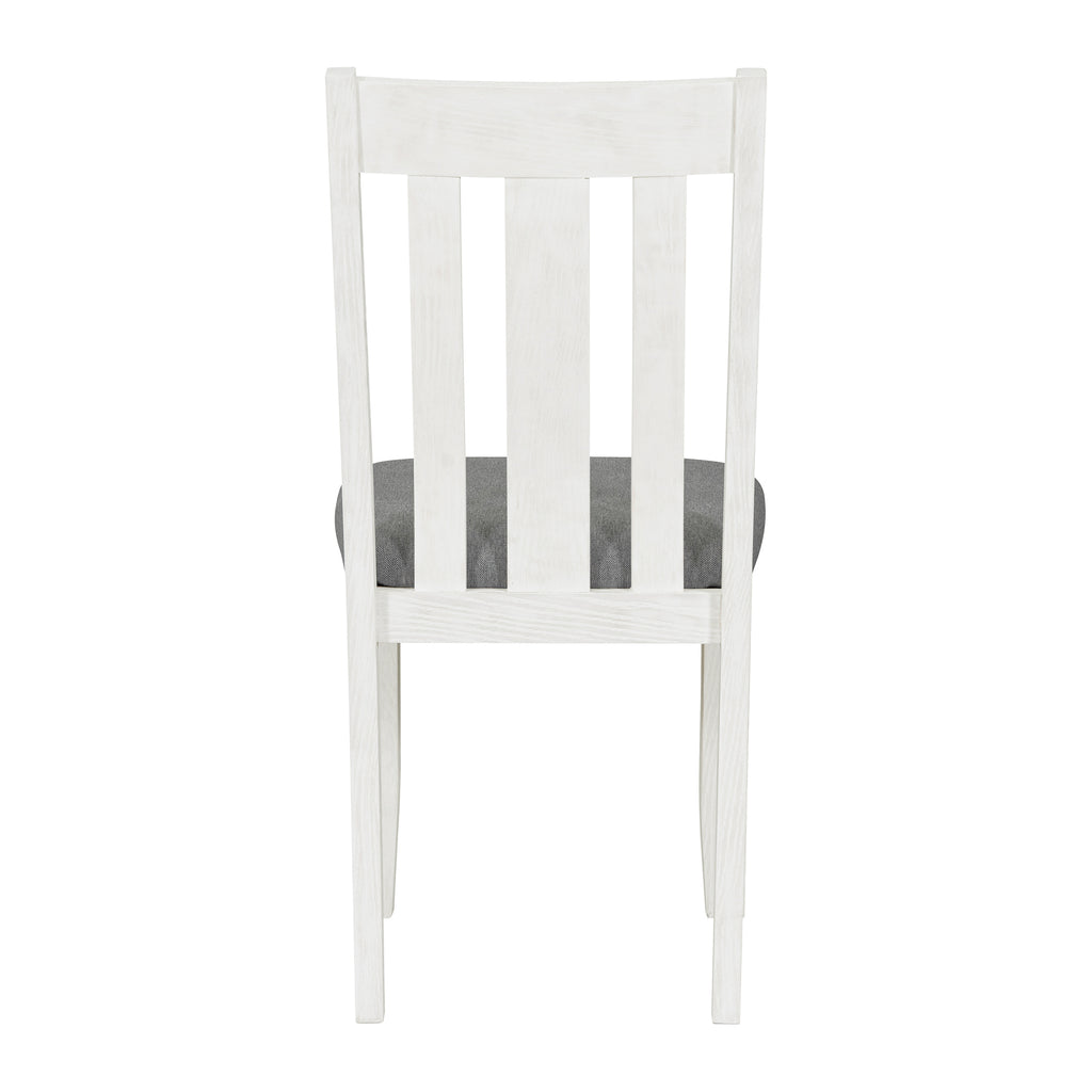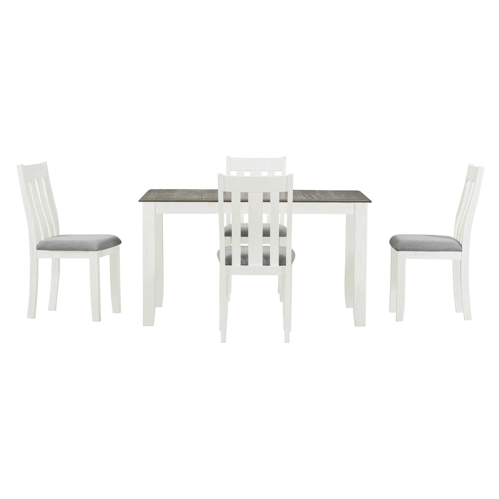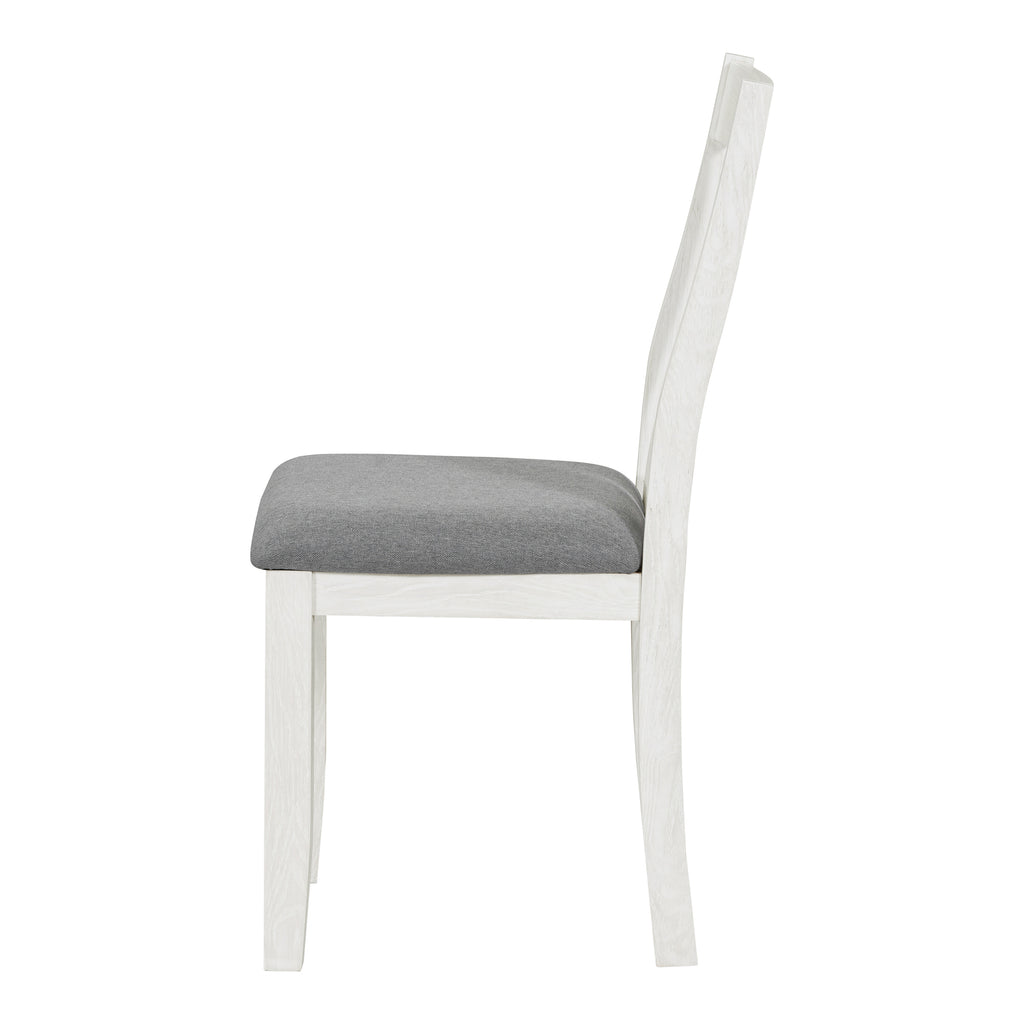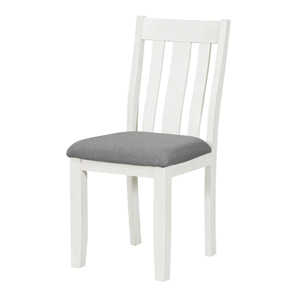 - The back of the chair is ergonomically designed, with just the right curve to support your back.With comfort in mind, the chairs are equipped with linen upholstered to provide you with a comfortable use while dining and working. The surface of the table is made of antique brown OAK veneered, which is very beautiful.The white legs of the table and chair are matched with pressing OAK effect, which makes it look more textured.