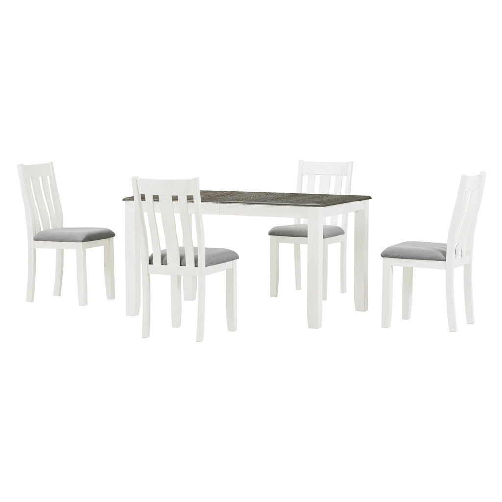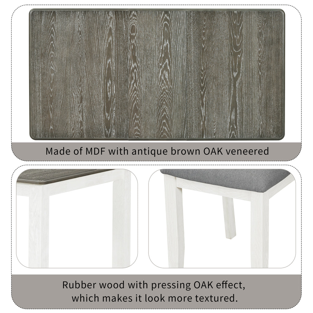 The back of the chair is ergonomically designed, with just the right curve to support your back.With comfort in mind, the chairs are equipped with linen upholstered to provide you with a comfortable use while dining and working. The surface of the table is made of antique brown OAK veneered, which is very beautiful.The white legs of the table and chair are matched with pressing OAK effect, which makes it look more textured.