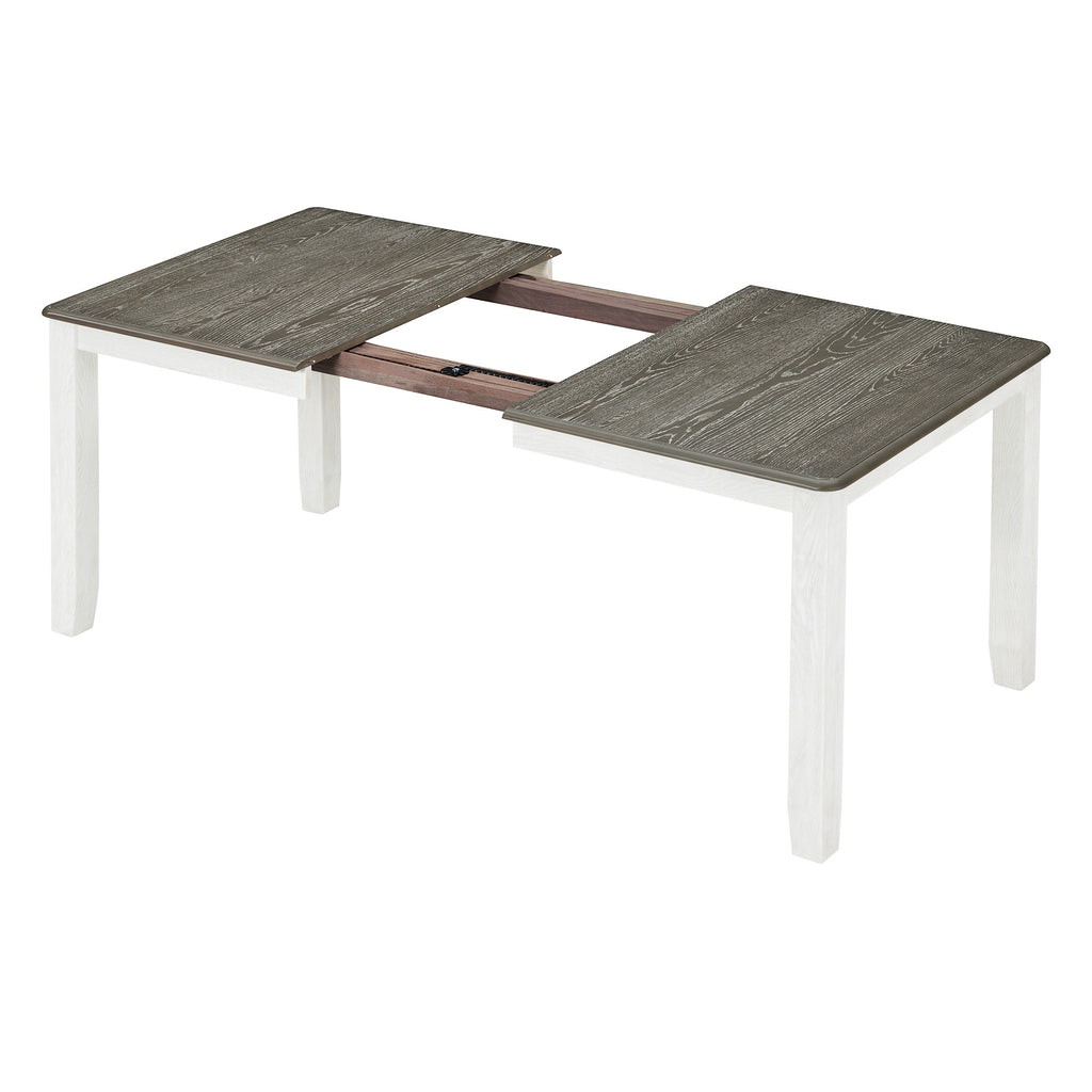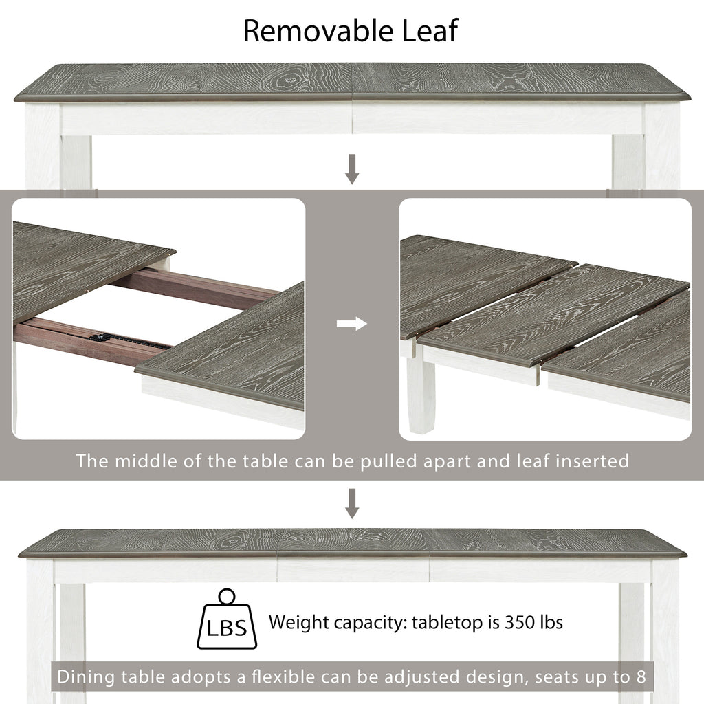 - This antique wooden extended dining table set looks simpler and more delicate. This beautiful piece adopts distressed finish design and elegant curves, and looks clever and sophisticated. The tabletop is built on 4 stable solid wood legs, with a removable leaf, so you can adjust the size of it to accommodate your space. A sturdy rubber wood and pine structure guarantees the service life and style of your home.