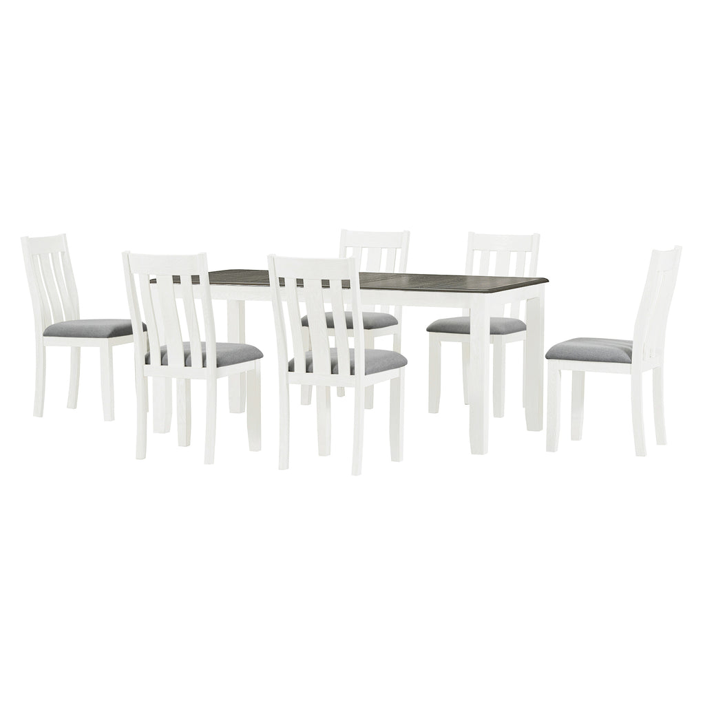 - This 7-piece dining table set is made of rubber wood table legs, pine apron, rubber wood sliding crossbar and MDF table top, which guarantees your service life and daily use. All chair legs, frame are made of rubber wood, with linen upholstered filled with high-density foam. Thereby ensuring the comfort. Table weight capacity: 350 LBS, chair weight capacity 250 LBS/piece.