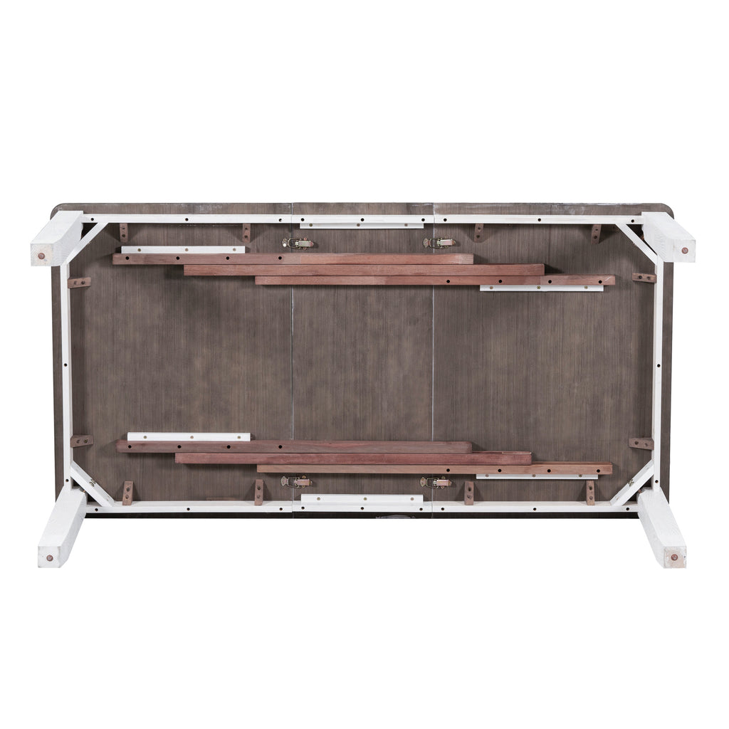This antique wooden extended dining table set looks simpler and more delicate. This beautiful piece adopts distressed finish design and elegant curves, and looks clever and sophisticated. The tabletop is built on 4 stable solid wood legs, with a removable leaf, so you can adjust the size of it to accommodate your space. A sturdy rubber wood and pine structure guarantees the service life and style of your home.