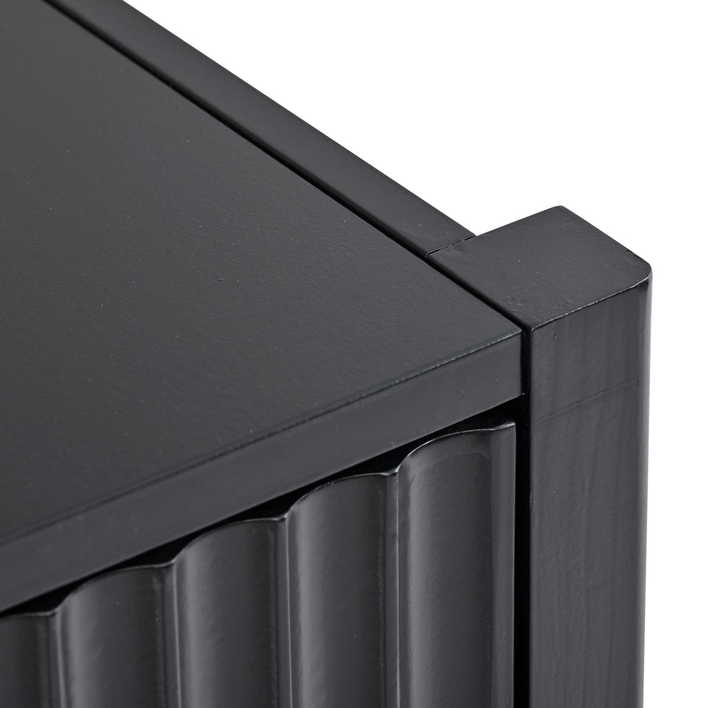 - [Stylish Wavy Door Design]:Features four vertically slatted cabinet doors with a wave-textured pattern that adds a modern and artistic flair to any space. The unique design blends style and function effortlessly.