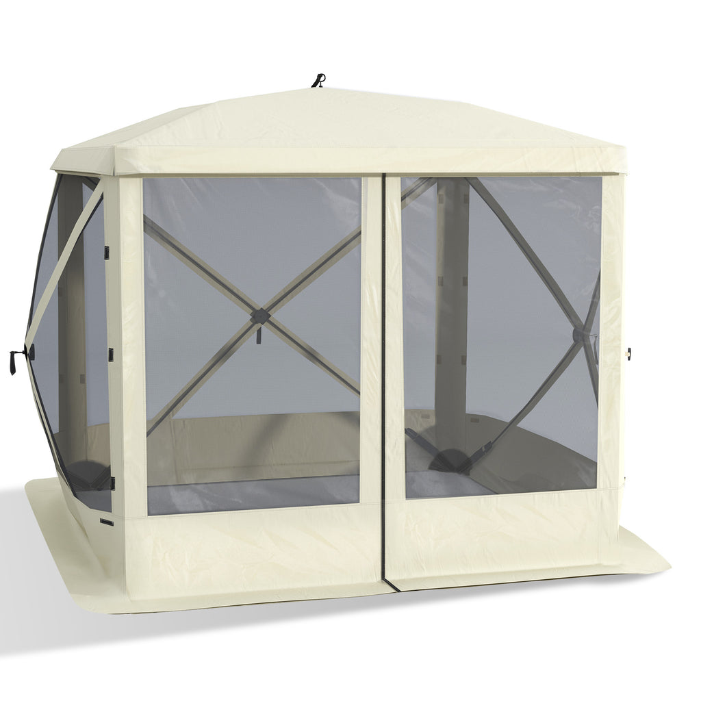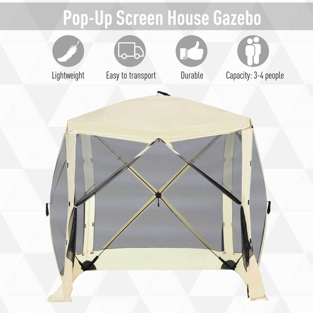 Outsunny Pop Up Camping Canopy Gazebo Screen Shelter Tent with Single Person Easy Set-Up, Ventilating Mesh, Portable Carry Bag for Outdoor Camping Party Event, 7x7FT, Beige