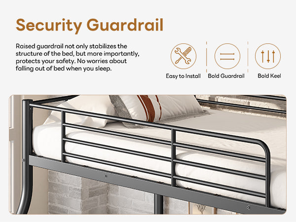 • Accompany Your Child: If your child is too young to sleep alone, our twin over ful bunk beds will be a great choice. You can sleep on the bottom bunk so that you can take care of your child at any time. Of course, if you have two children, it is also a very good choice.