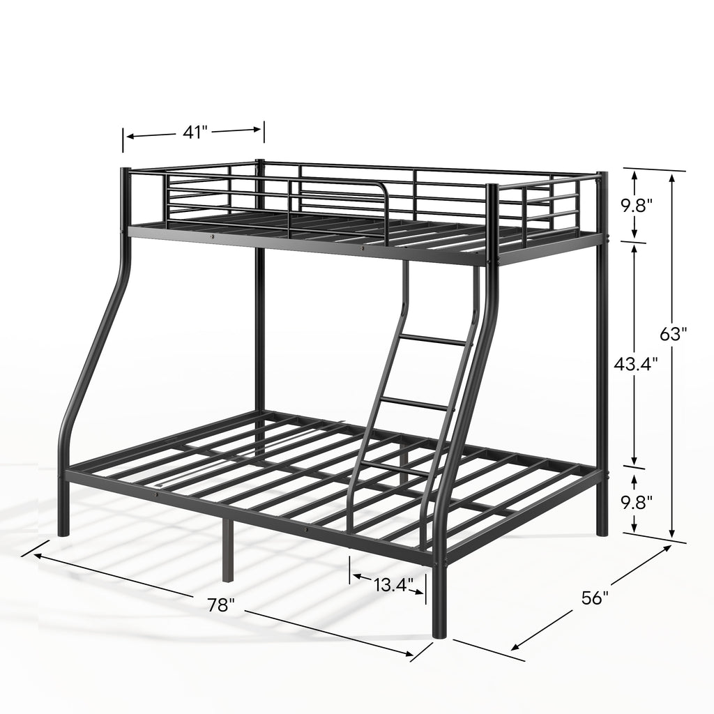 Metal Bunk Bed, Twin Over Full Size Support for Adults Teens, Black