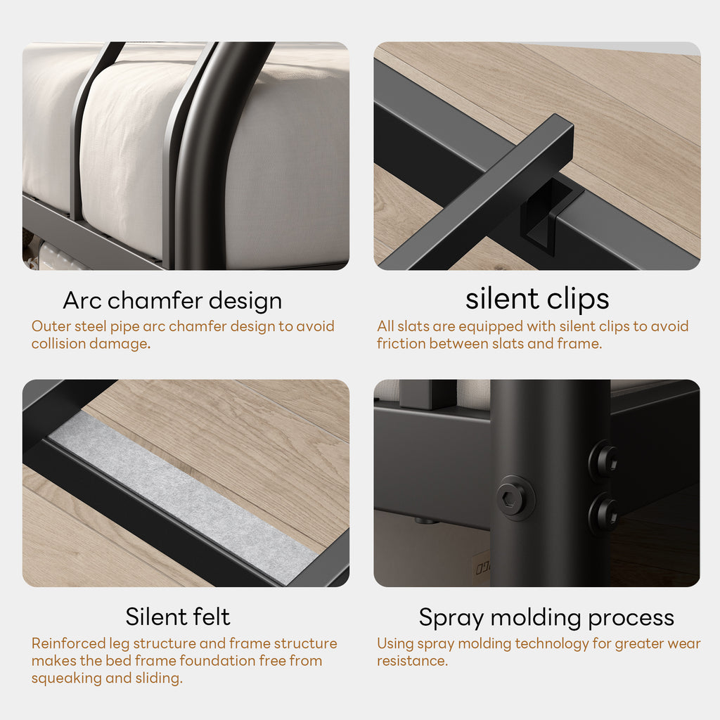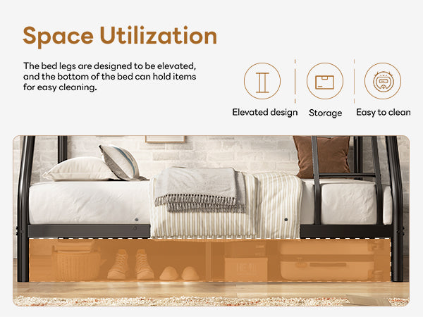 • No Box Spring Required: Heavy metal slats support your mattress without the need for a box spring. Fixed slats and raised sides hold the mattress in place, preventing it from sliding. Suitable for 1 twin and 1 full mattress (sold separately).