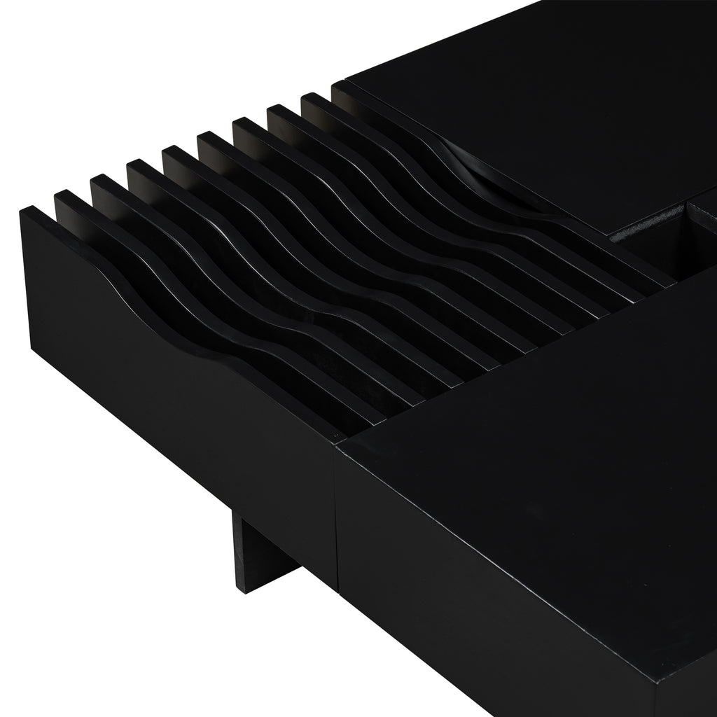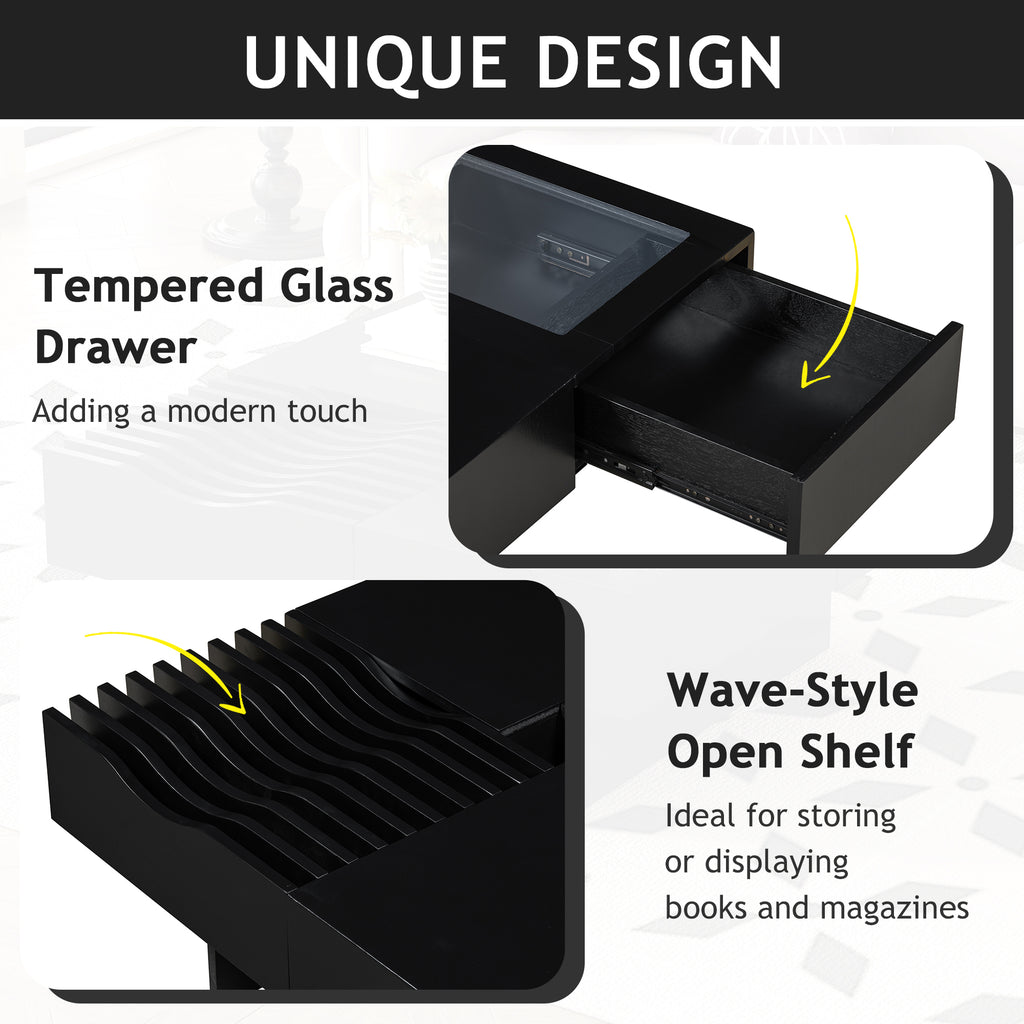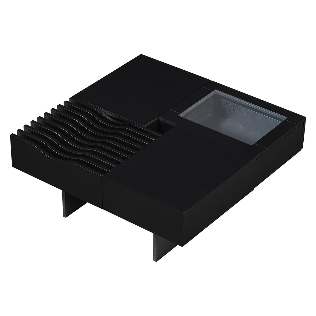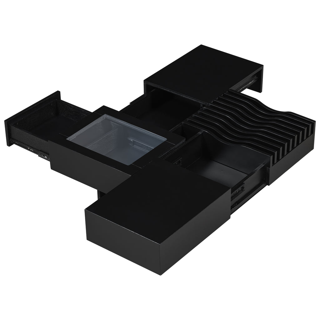 This multifunctional square coffee table is a perfect example of modern furniture design that prioritizes both aesthetics and practicality. With its beautiful solid wood craftsmanship, wave style for decoration, transparent tempered glass observation window, and ample storage options through multiple drawers, it offers everything you need to keep your living space organized, stylish, and functional. Its timeless design and adaptable nature make it suitable for various interior styles, from contemporary to classic, ensuring that it will remain a central piece in your home for years to come.