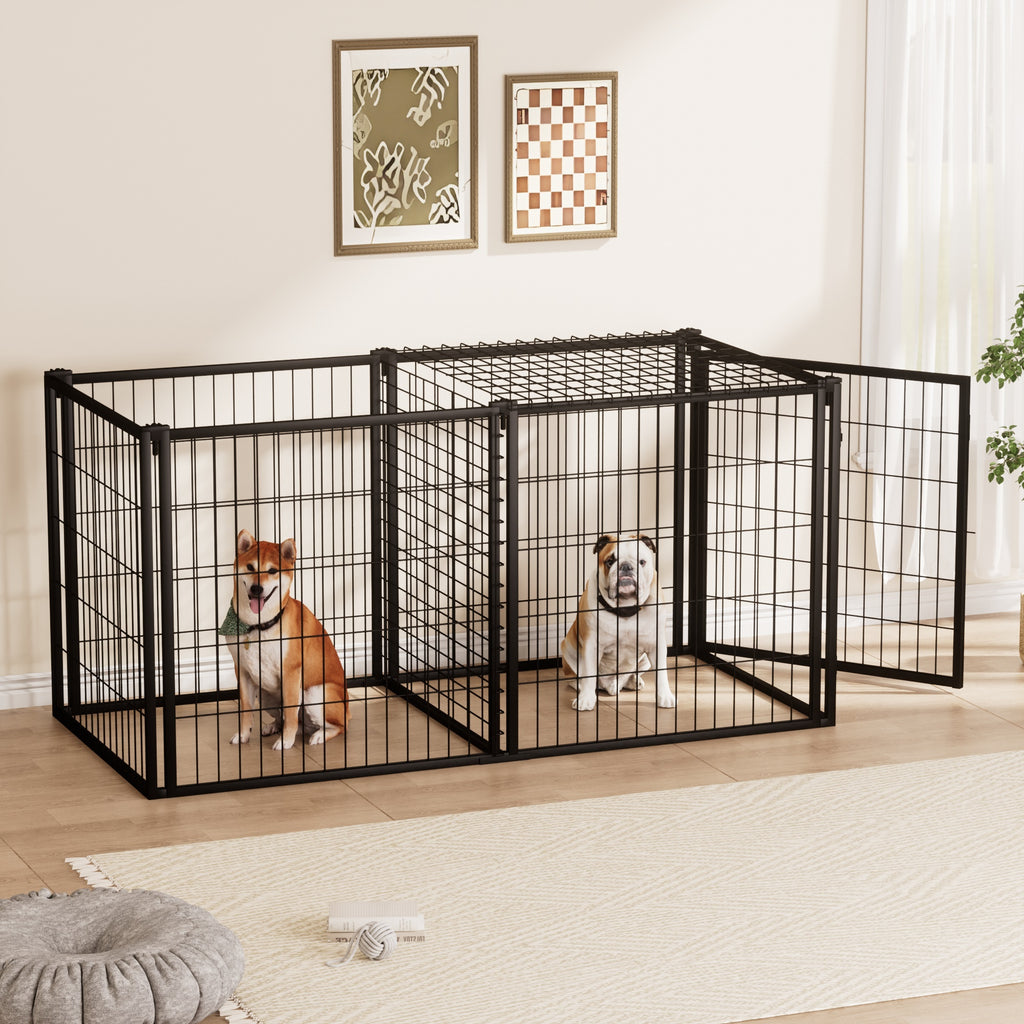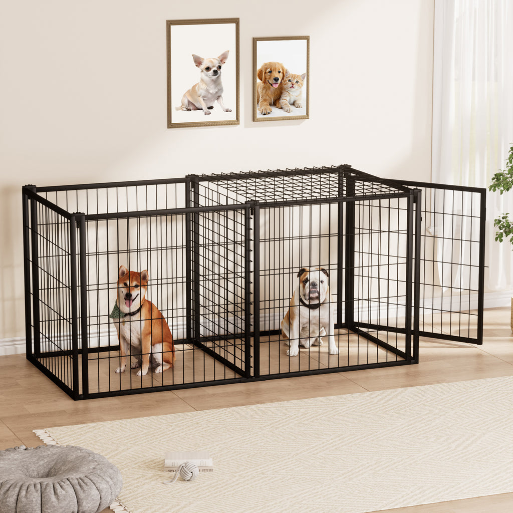• Safe top cover and flexible door placement: The dog cage has a safe top cover that can effectively prevent your pet from escaping. You can open it and play with the dog, or you can lock it directly. In addition, it provides the flexibility to install doors at any desired location, allowing you to customize access points based on the layout of your home or the specific needs of your pets.