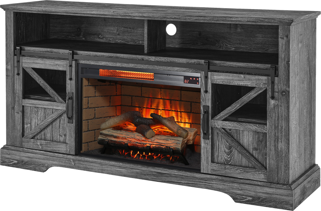 60 Inch Electric Fireplace Entertainment Center With Door Sensor-Dark Rustic Oak
