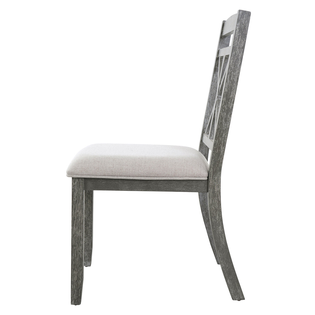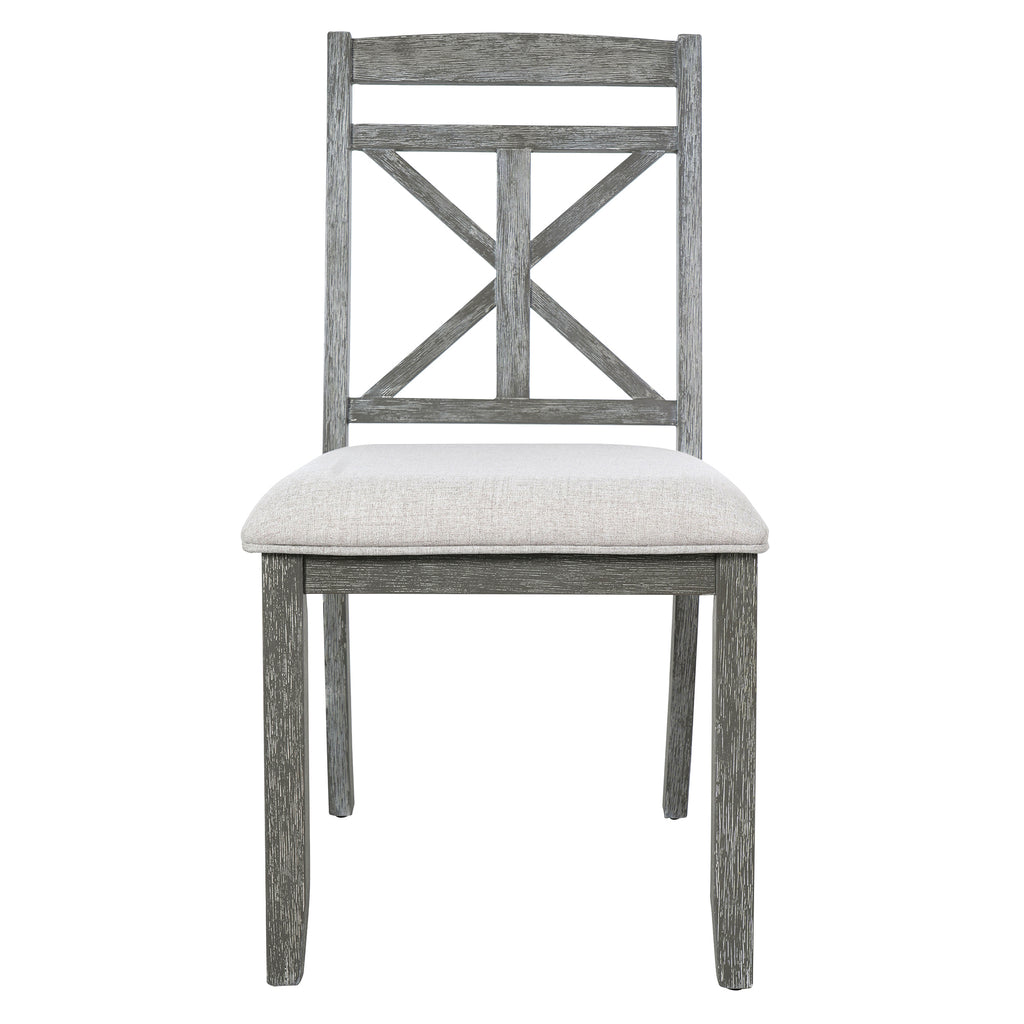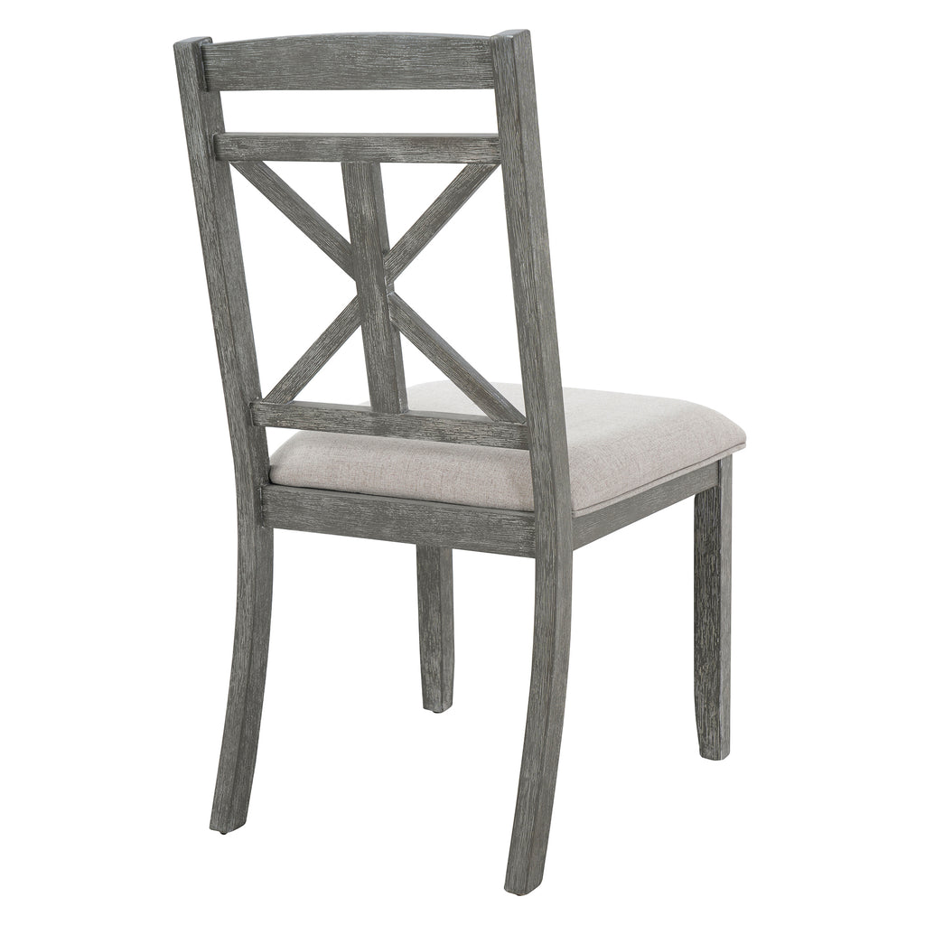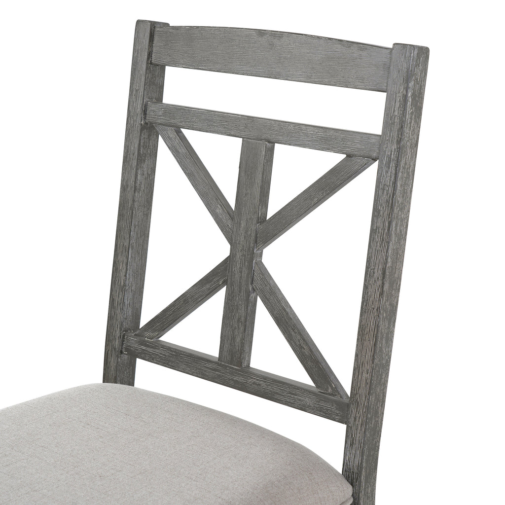 - High Quality: This vintage dining table set with wood pattern has good quality and adds understated elegance to your dining room. The main frame of the dining table set is made of solid rubber wood to ensure stability and durability for daily use. All four chairs are wrapped in linen as the seat cushion and filled with soft foam to provide you with a comfortable sitting experience. The weight capacity of the table and chair is separately 220 LBS and 250 LBS/PCS.