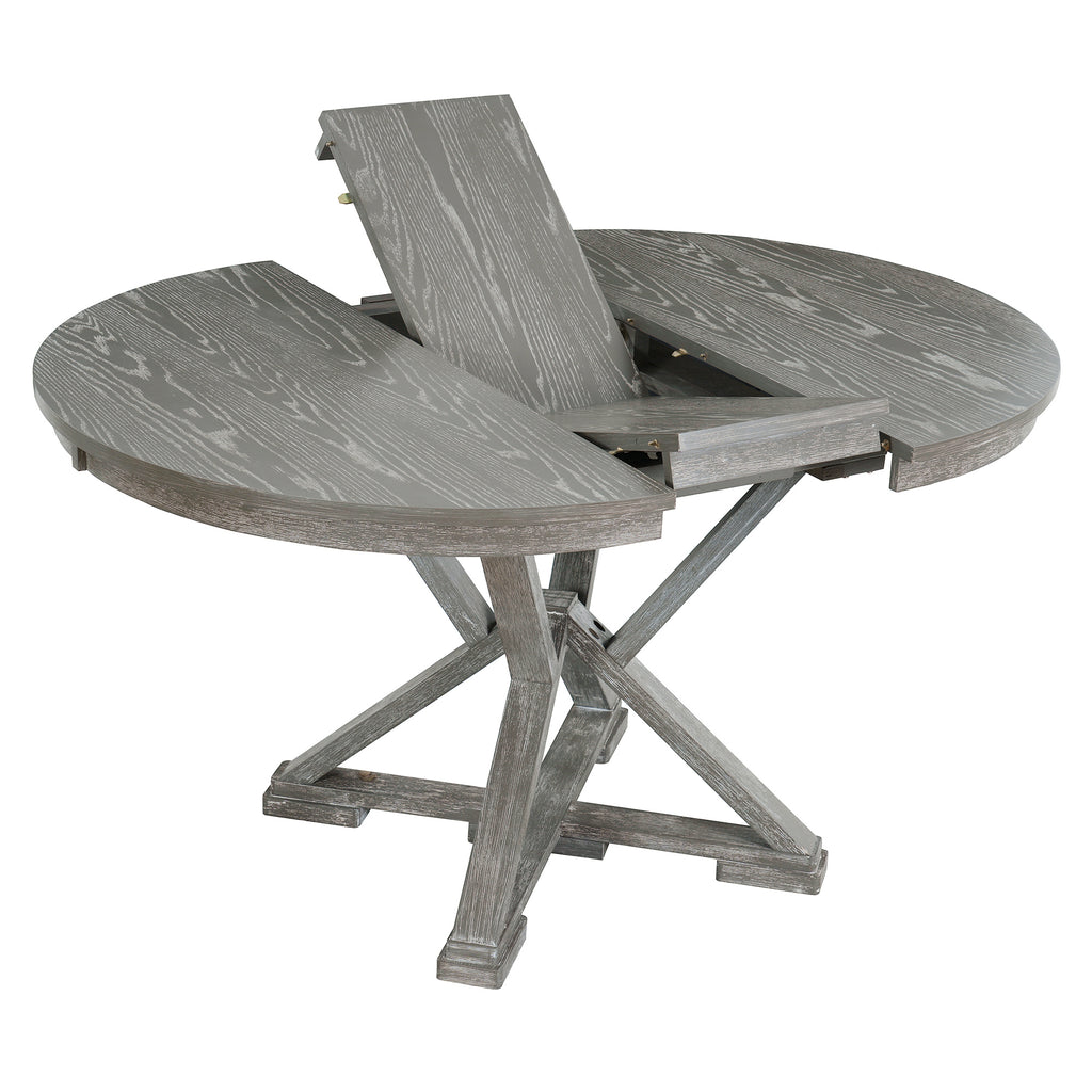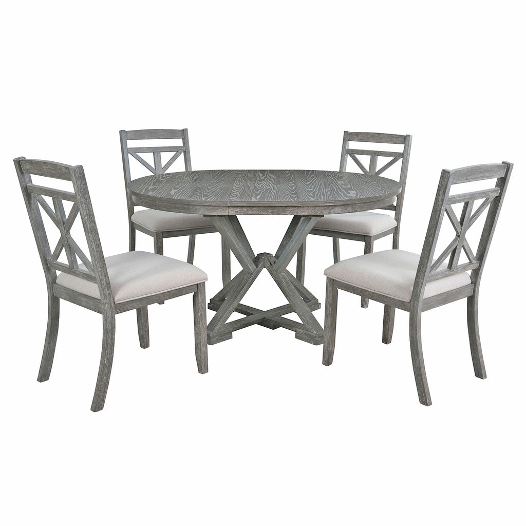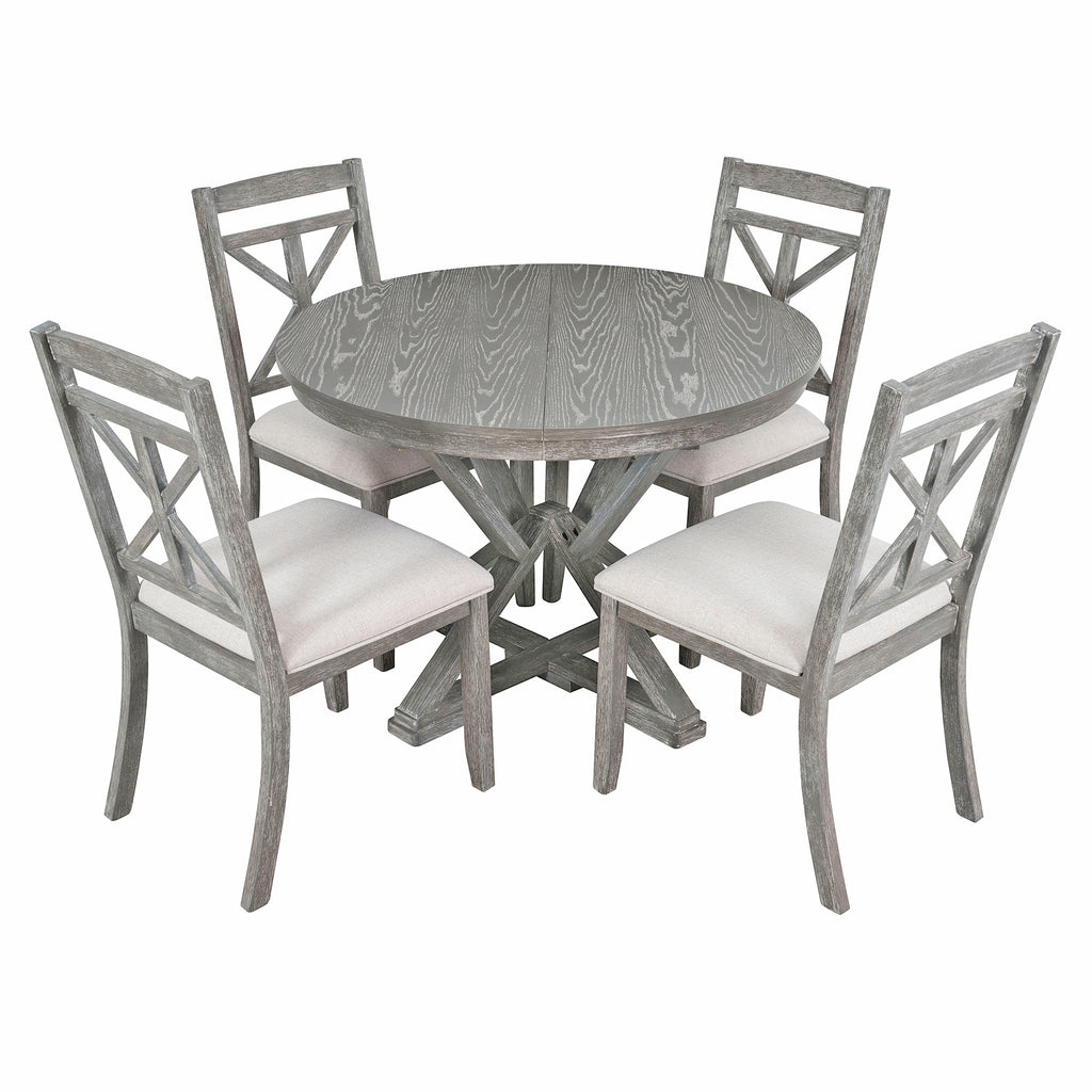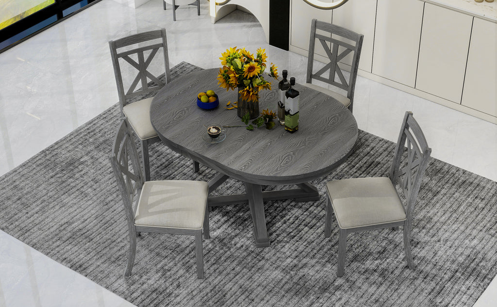 - Vintage Flair: This design-inspired vintage dining table set includes a 12-inch extendable round table and four dining chairs. There are two colors to choose from, gray and brown. No matter which color dining table and chair set you choose, it will add a strong vintage vibe to your home decor.This dining table and chair set creates a simple and elegant atmosphere, perfect for use in the kitchen, dining room or living room.