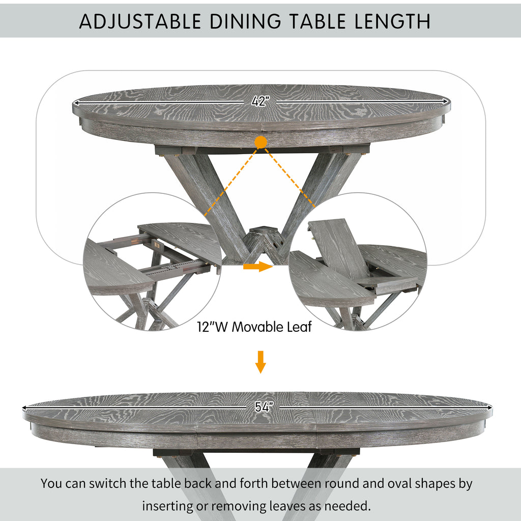 - Adjustable Dining Table Length: The Round Dining Table comes with a 12-inch leaf that creates an oval dining table, which is used to accommodate more people and for different lengths of use. The total length of the dining table is 54 inches and 42 inches with the boards removed. You can switch the table back and forth between round and oval shapes by inserting or removing leaves as needed. The adjustable design makes your daily life easier.