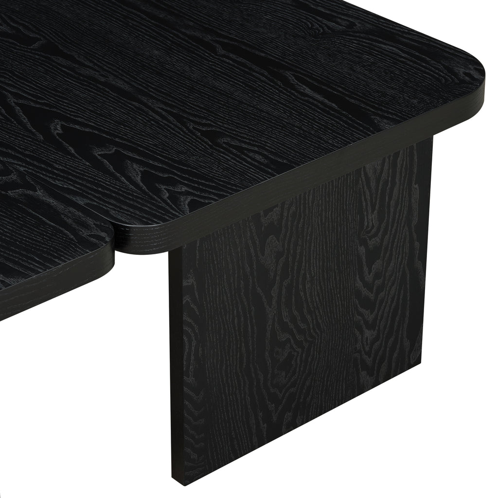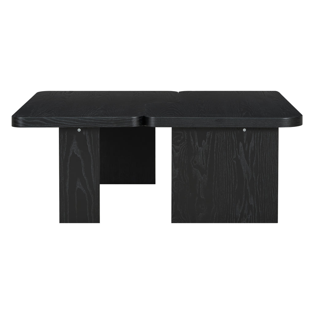 This minimalist coffee table exudes elegance with its sleek lines, modular design, and contemporary aesthetics. Crafted from wooden medium-density fiberboard, it features two L-shaped sections that can be arranged in multiple configurations—forming a rectangle, a square, or even a snug corner piece beside your sofa. The table's wood grain veneer is incredibly versatile, blending seamlessly with various design styles while being exceptionally easy to clean and maintain. Supported by a sturdy leg structure, the table boasts impressive load-bearing capacity, capable of holding up to 25 lbs. The legs, designed with simplicity and modernity in mind, avoid intricate decorations, fitting perfectly into modern home decor. Easy to assemble, this coffee table enhances living spaces with its stylish and practical design, bringing both convenience and enjoyment to your everyday life.