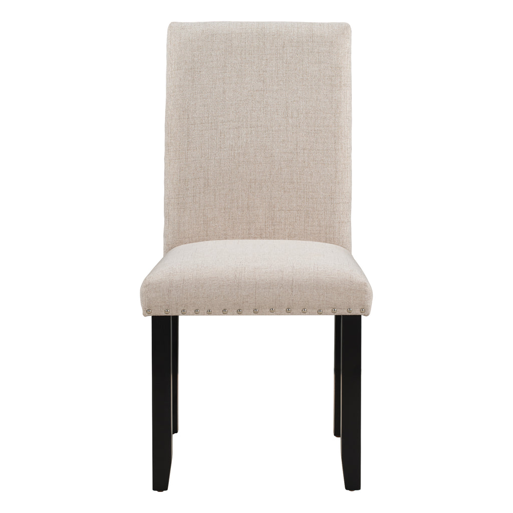 Both the seat cushion and the back of this wooden dining set are padded in highly elastic sponge and tightly woven burlap upholstery. 4.3' thicken cushion for upgraded comfort. Each chair comes complete with wide seating, the seats are formulated for easy spot cleaning with the wipe of a damp cloth.
