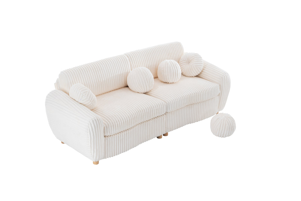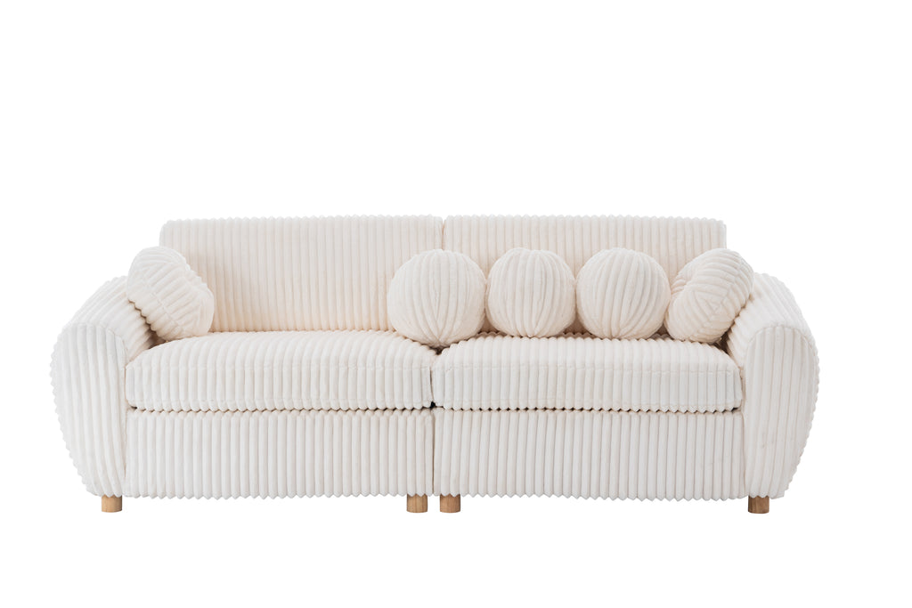Modern Sofa for Living Room, 84' White Corduroy Sofa Couch, Sectional Love Seat Couch, Upholstered Sofa for Apatment Bedroom Home Office